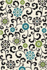 La couleur crème procure une toile de fond pour le motif floral noir, gris, vert et bleu de cette carpette.