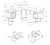 | Options de rangement | Deux petits tiroirs et un grand tiroir pour dossiers suspendus. |
