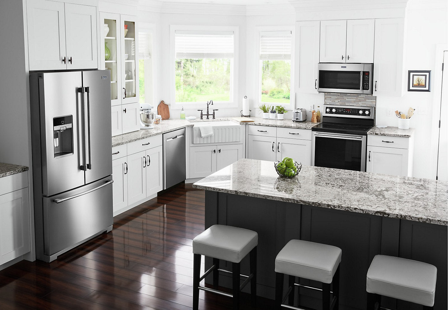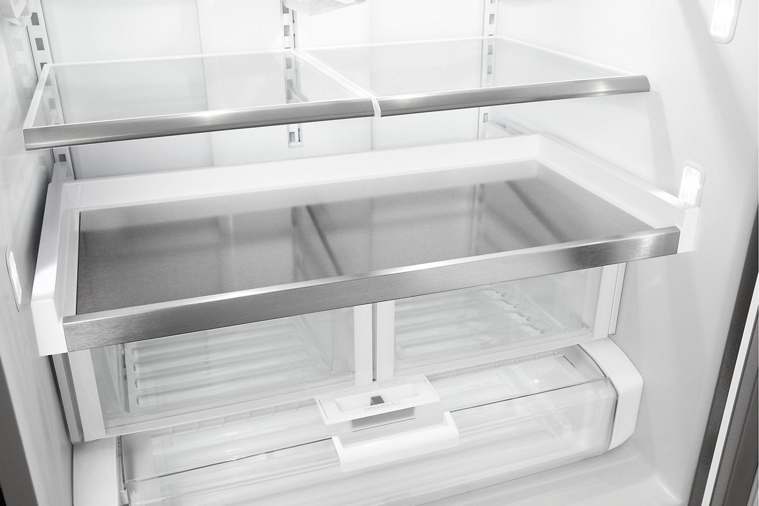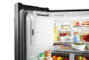 Fonction PowerCold®: Refroidissez le réfrigérateur en une seule touche avec la fonction PowerCold® pour maintenir une température adéquate même après une utilisation fréquente par tous les membres de la famille. Tablette coulissante en métal: Accédez à vos aliments rapidement grâce à une tablette pleine largeur en métal durable qui coulisse pour que vous puissiez voir vos articles et prendre ce que vous voulez. Machine à glaçons dans la porte Store-N-Door®: La machine à glaçons dans la porte Store-N-Door® libère de l’espace dans le réfrigérateur pour y ranger davantage de vos produits favoris. De plus, le bac à glaçons étant amovible, il libère un espace idéal pour ranger les contenants volumineux comme les mélangeurs et glacières. Éclairage à DEL BrightSeries™: L'éclairage durable BrightSeries™ à DEL diffuse une lumière vive blanche et consomme moins d'énergie que l'éclairage incandescent. Garantie limitée de 10 ans sur les pièces pour le compresseur: Notre garantie limitée de 10 ans sur les pièces pour le compresseur couvre la pièce maîtresse du réfrigérateur, afin que vous sachiez que vous pouvez compter sur celui-ci pour garder vos aliments bien froids pendant des années. Tiroir à charcuterie à température contrôlée Wide-N-Fresh™: Le tiroir à charcuterie à température contrôlée Wide-N-Fresh™ est d'une taille idéale pour accueillir les grands plateaux de vos réceptions. Acier inoxydable résistant aux traces de doigts: Facile à nettoyer, le fini en acier inoxydable résistant aux traces de doigts permet de prévenir les taches et fait que votre réfrigérateur est aussi beau à l'extérieur qu'il est fonctionnel à l'intérieur. Bacs à légumes à humidité contrôlée FreshLock™: Les bacs à légumes à humidité contrôlée FreshLock™ procurent amplement d’espace pour maintenir le bon goût de vos légumes-feuilles et la saveur de vos fruits. Filtre à eau EveryDrop®: Le filtre à eau EveryDrop® réduit le plus de contaminants* et filtre l’eau dure ou douce pour un goût frais. Conservateur de fruits et légumes FreshFlow™: Le conservateur de fruits et légumes FreshFlow™ contribue à maintenir vos fruits et légumes plus frais, plus longtemps. * *Fruits et légumes fréquemment achetés. Balconnets de porte pour contenants de 4 litres: De construction robuste, ces balconnets de porte pour contenants de 4 litres libèrent de l’espace sur les tablettes pour placer les articles longs et hauts. Système de rangement du congélateur facile d'accès: Pour accommoder tous vos besoins de rangement, ce système d'organisation de congélateur facile d’accès comprend un petit bac, un casier à pizza et un diviseur flexible à deux niveaux, qui bouge d’un côté à l’autre pour un rangement polyvalent. Conception de charnière Strongbox™: La conception de la charnière Strongbox™ permet de maintenir les portes bien scellées aux bons endroits pour une grande longévité. Capteurs électroniques: Les capteurs électroniques permettent au compresseur de réagir rapidement avec le débit d'air requis pour que les niveaux de température puissent demeurer constants. Machine à glaçons installée en usine: Une machine à glaçons installée en usine produit toute la glace dont vous avez besoin à longueur d'année et peut conserver jusqu'à 3,5 lb de glaçons. Filtre à air FreshFlow™: Le filtre à air Freshflow™ est 15 fois plus efficace que le bicarbonate de soude pour réduire les odeurs alimentaires courantes en faisant circuler l'air à travers le filtre à base de charbon. |