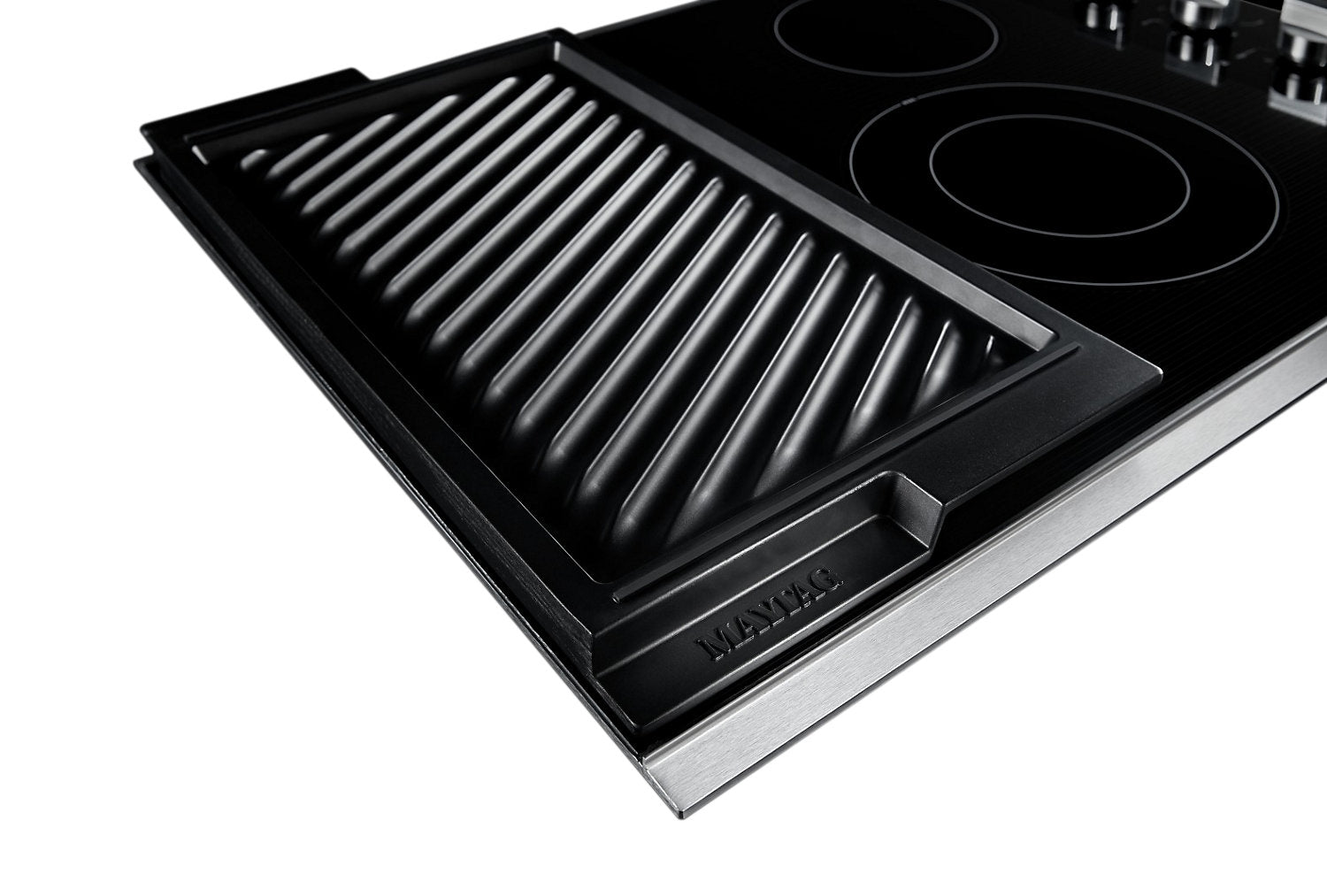 Surface de cuisson électrique exclusive à Maytag avec gril et plaque chauffante réversibles Faire bouillir, faire sauter, faire revenir, retourner ou faire griller. Peu importe ce que vous servez à la table, Maytag apporte la chaleur avec une surface de cuisson électrique exclusive munie d'un gril et plaque chauffante réversibles. gril et plaque chauffante réversibles Augmentez la chaleur de l'élément pont muni du gril et de la plaque chauffante réversibles pour faire griller des hamburgers ou pour retourner une pile de crêpes. Placez la plaque dans le lave-vaisselle pour un nettoyage aisé. Les poignées en caoutchouc garantissent une prise sécuritaire non glissante et résistante aux égratignures lorsque l'appareil est placé sur la surface de cuisson. Élément Dual-ChoiceMC 10 po et 6 po L'élément Dual-ChoiceMC 10 po et 6 po vous permet de cuisiner avec la poêle que vous voulez et la puissance dont vous avez besoin. Gérez un sauté lent et uniforme puis intensifiez la chaleur pour faire revenir. |