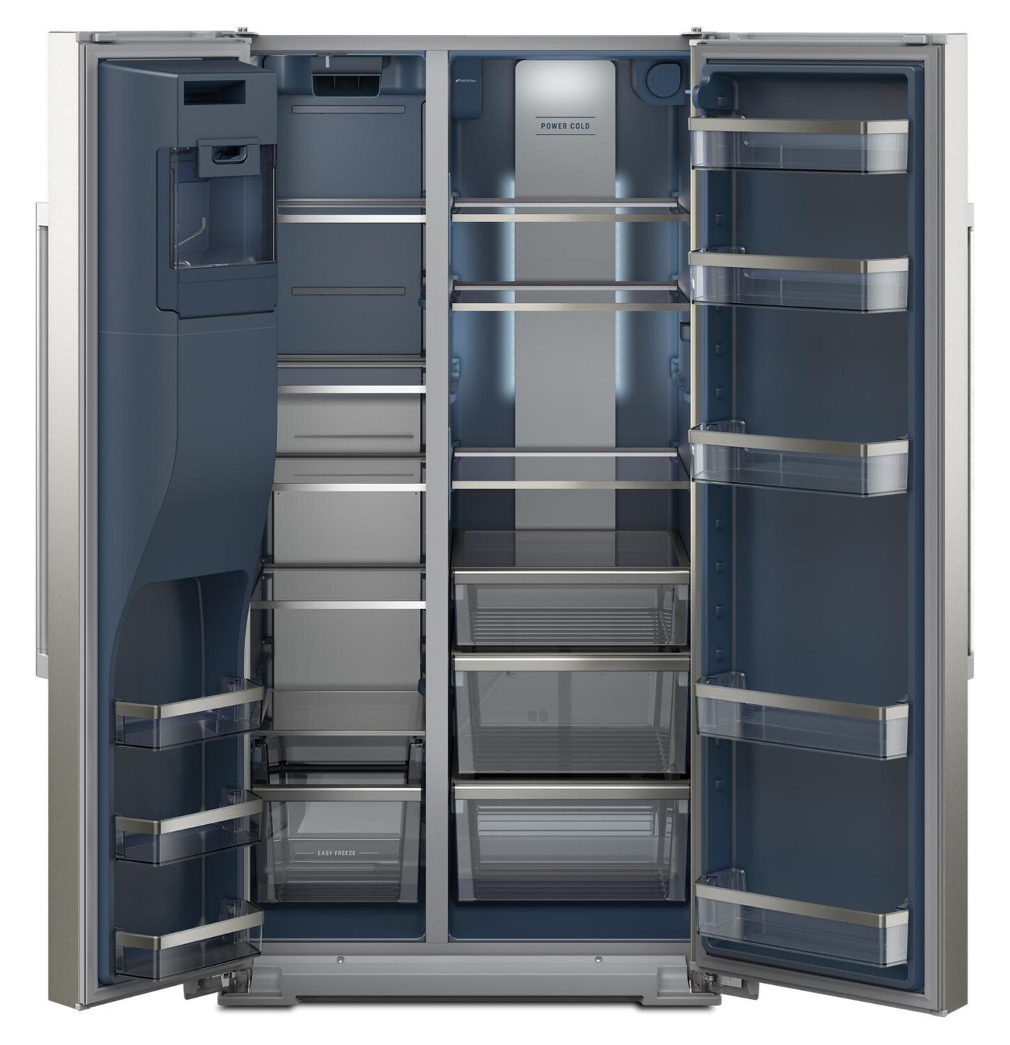 Tour d’éclairage à DEL: Fini inoxydable résistant aux traces de doigts: Fonction PowerCold®: Système de refroidissement EvenAir™: Intérieur bleu arctique: Machine à glaçons Store-N-Door®: Refroidissement PowerFreeze™: Bacs à légumes à humidité contrôlée FreshLock™: |
