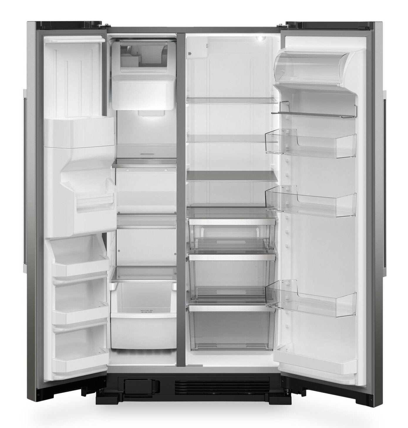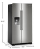 Acier inoxydable résistant aux traces de doigts : Bac pour contenants de grand format dans la porte : Distributeur d'eau et de glaçons à l'extérieur : Tablette en métal : Charnières de porte robustes : Machine à glaçons installée en usine : Support à cannettes : Bac à légumes FreshLockMC à humidité contrôlée : Tiroir à charcuteries et à collations : |