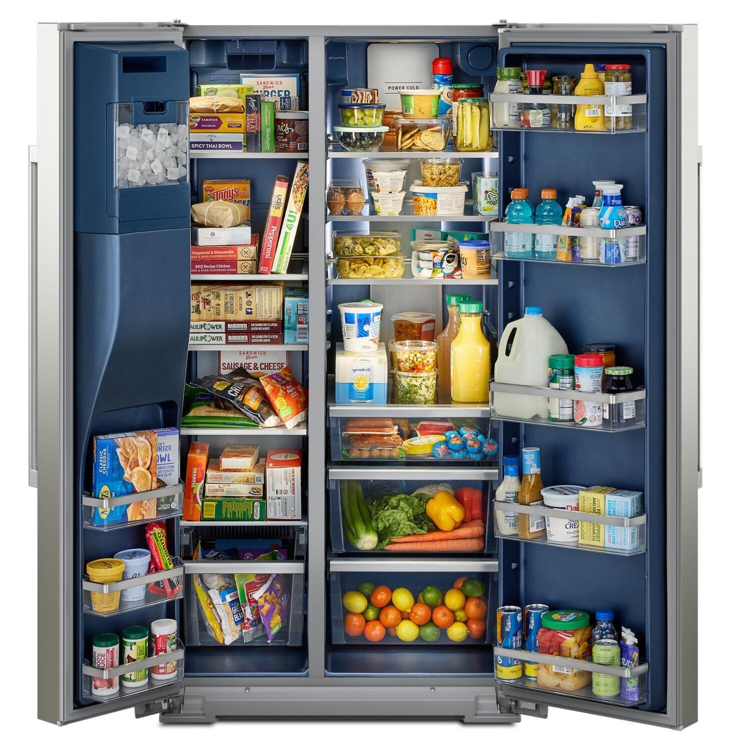 Tour d’éclairage à DEL: Fini inoxydable résistant aux traces de doigts: Fonction PowerCold®: Système de refroidissement EvenAir™: Intérieur bleu arctique: Machine à glaçons Store-N-Door®: Refroidissement PowerFreeze™: Bacs à légumes à humidité contrôlée FreshLock™: |