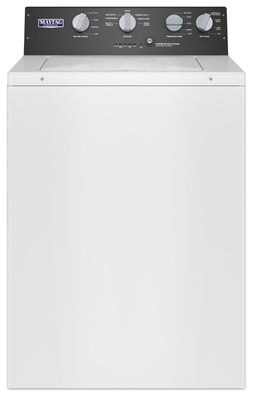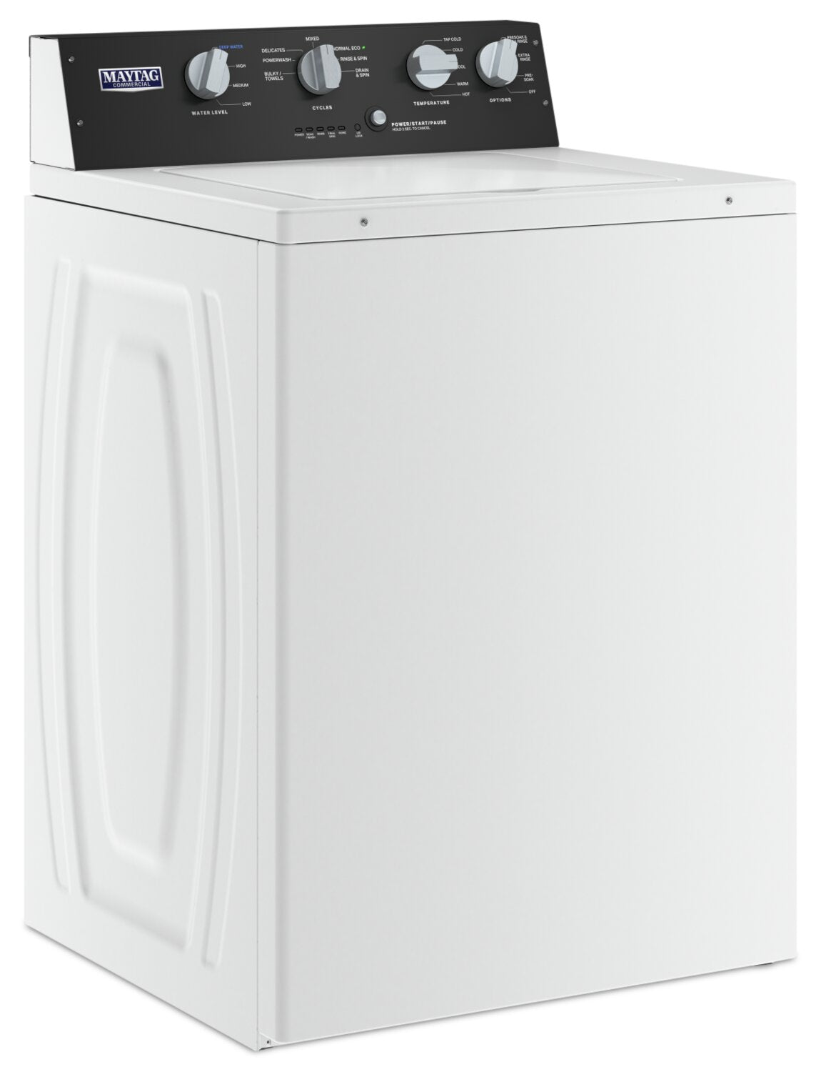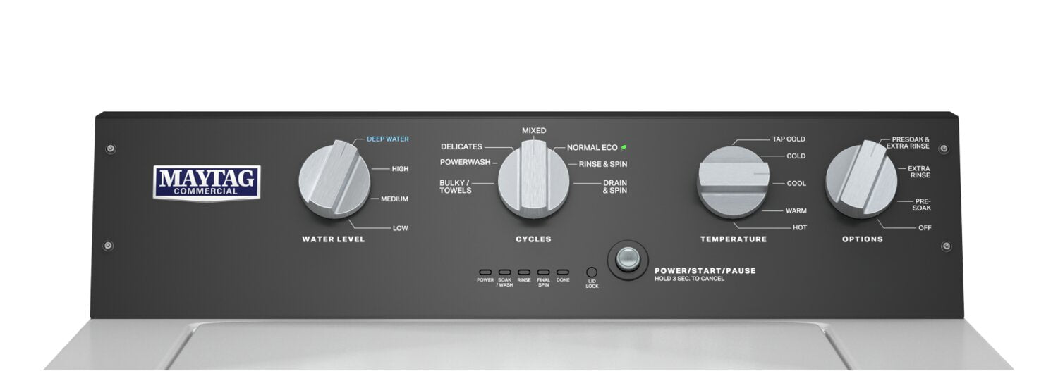 Laveuse de qualité commerciale : Agitateur à double action : Sélection du niveau d'eau : Programme PowerWashMD : Option de remplissage Spin Fill : Cycle normal éco : |
