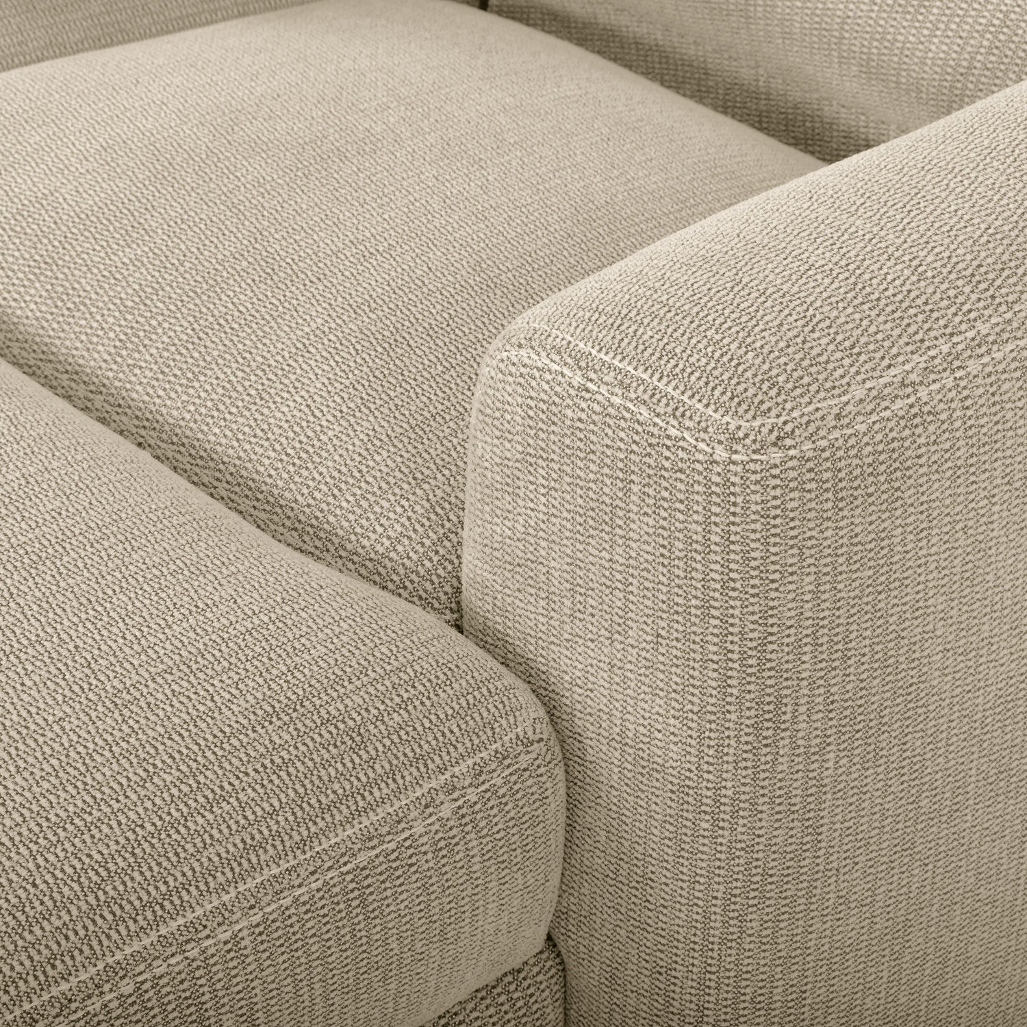 | Détails décoratifs | Les coutures de couleur pâle bordent les coussins de siège et les accoudoirs, créant un contraste subtil. |
