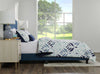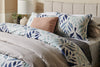 | Détails décoratifs | Passepoil sur les taies d’oreillers, faits du même tissu, et piqué « tack and jump » sur l’édredon. |