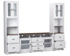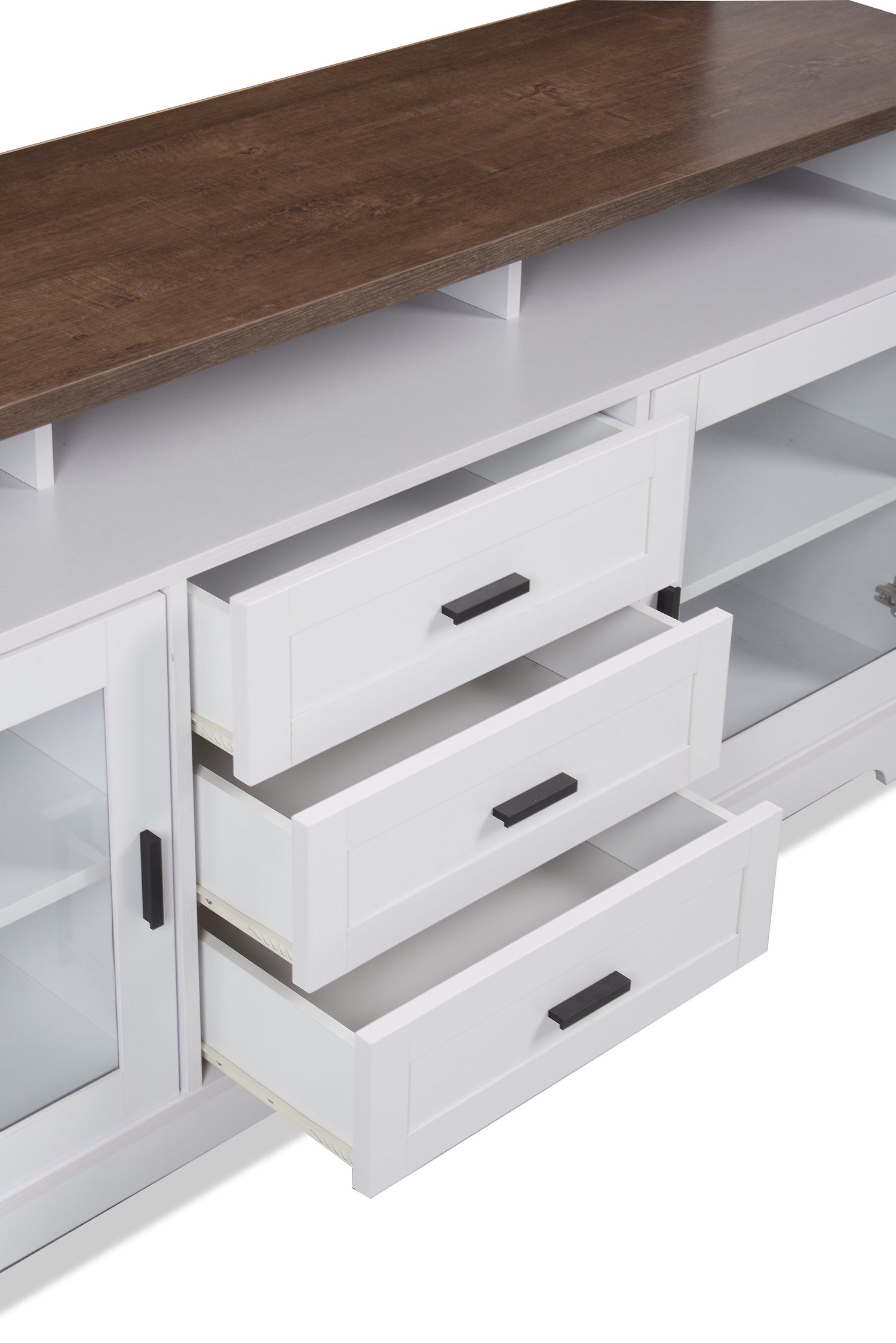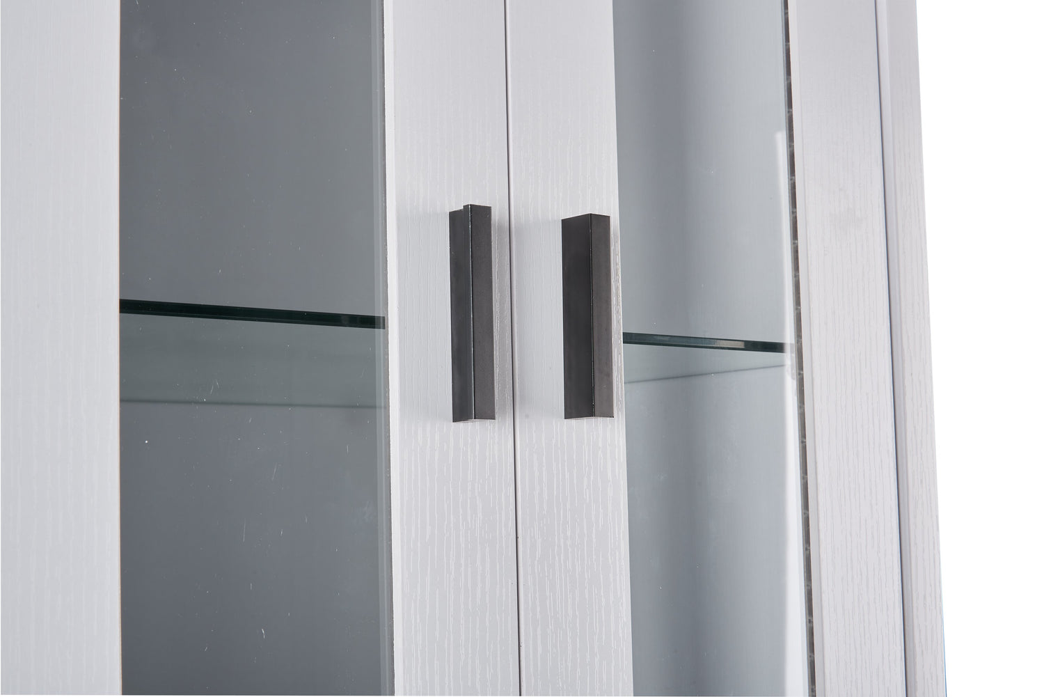 | Options de rangement | Deux compartiments ouverts avec tablette réglable, une armoire avec porte avant vitrée deux tiroirs avec glissières en métal. |