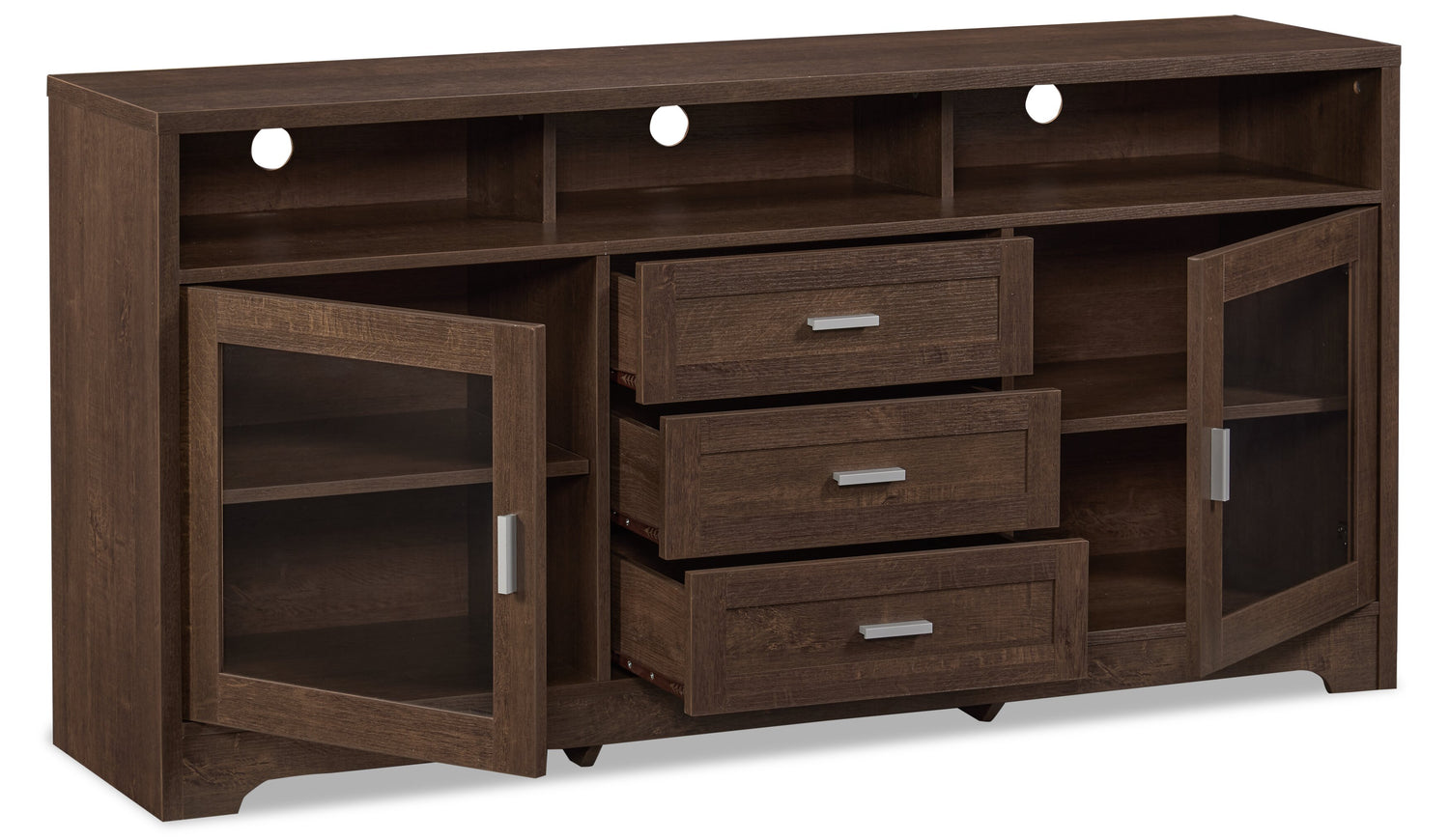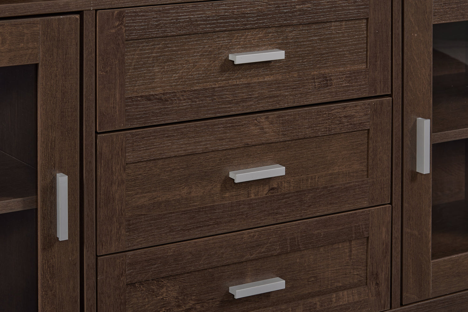 | Options de rangement | Trois compartiments ouverts, deux armoires avec portes avant vitrées et tablettes réglables, trois tiroirs avec glissières en métal. |