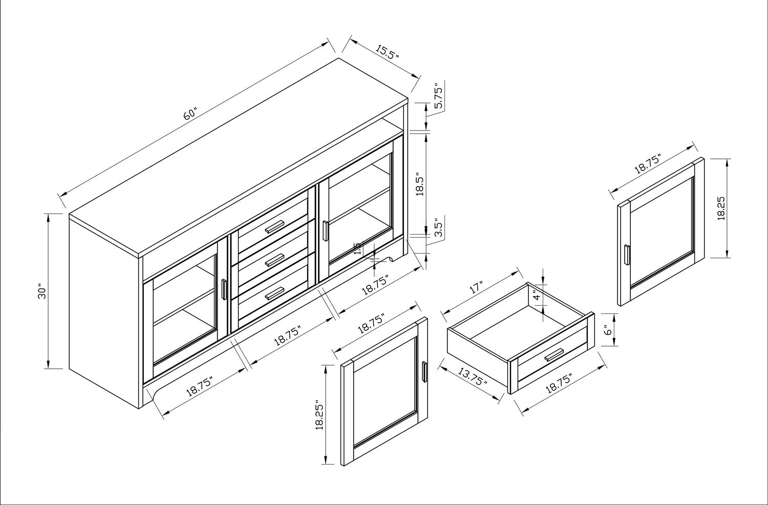 Largeur : 60 po (152,4 cm) Hauteur : 30 po (76,2 cm) Profondeur : 15,5 po (39,4 cm)
