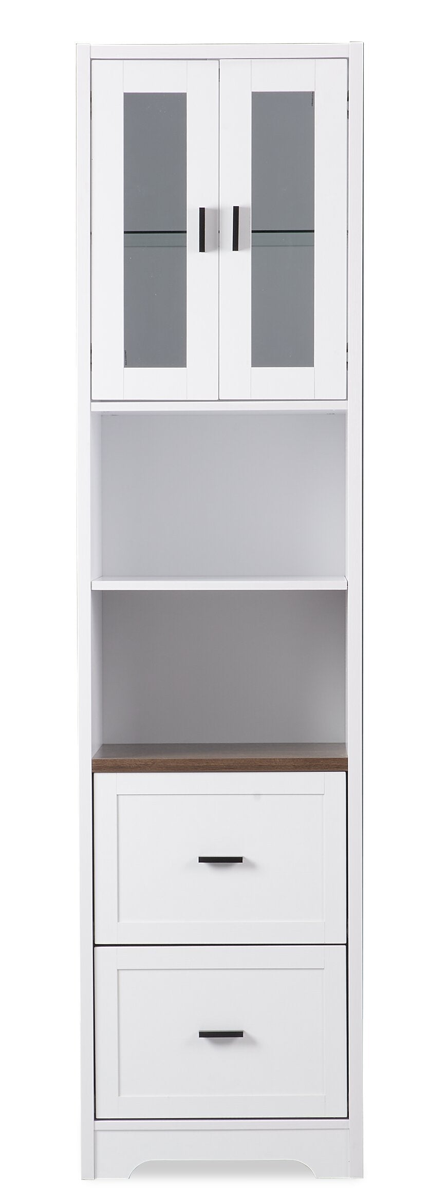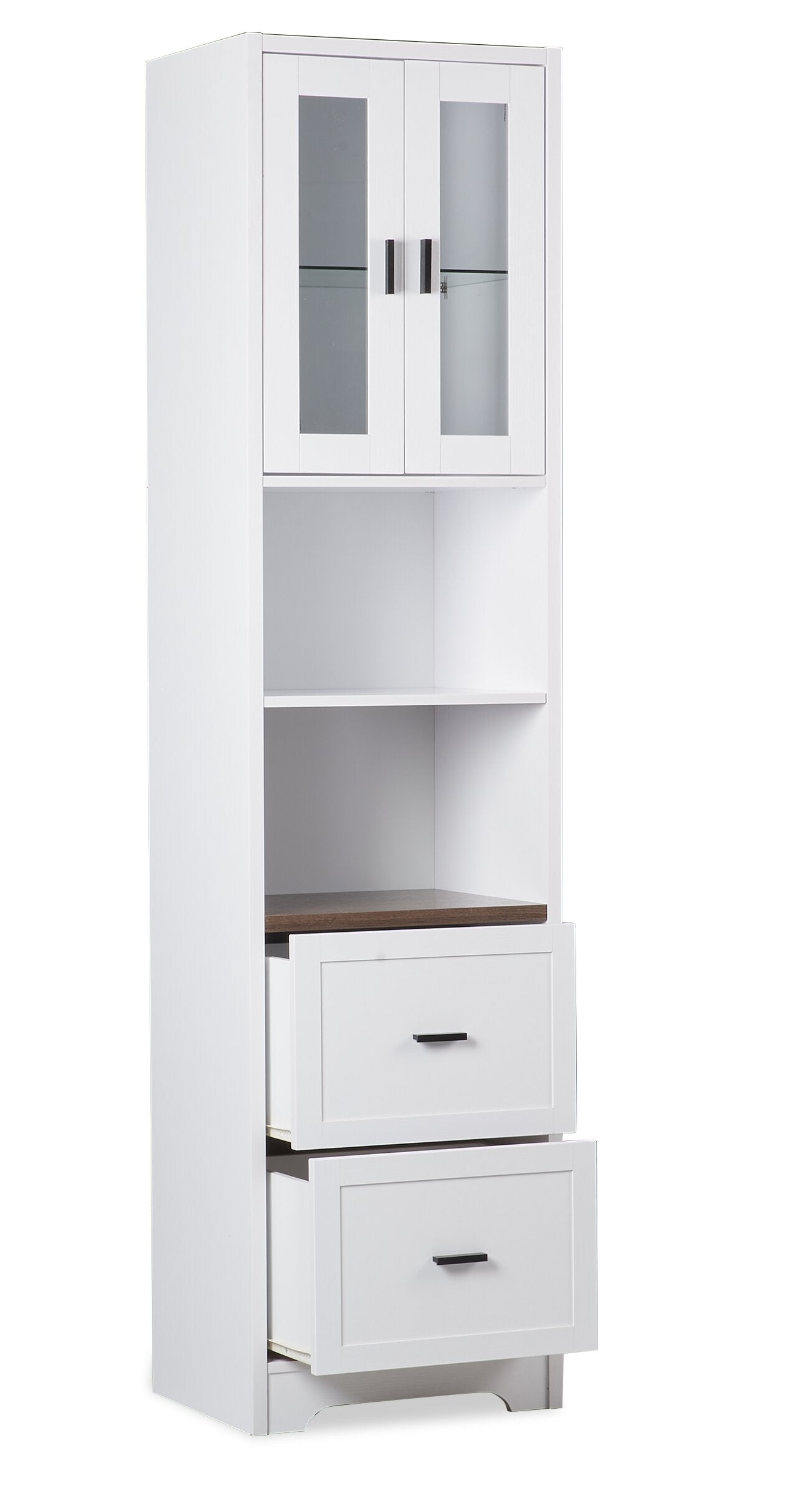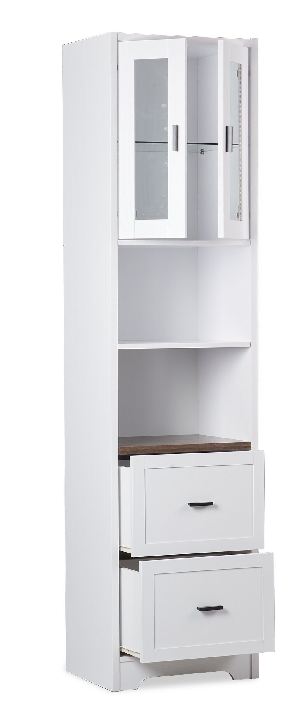 | Options de rangement | Deux compartiments ouverts avec tablette réglable, une armoire avec porte avant vitrée deux tiroirs avec glissières en métal. |