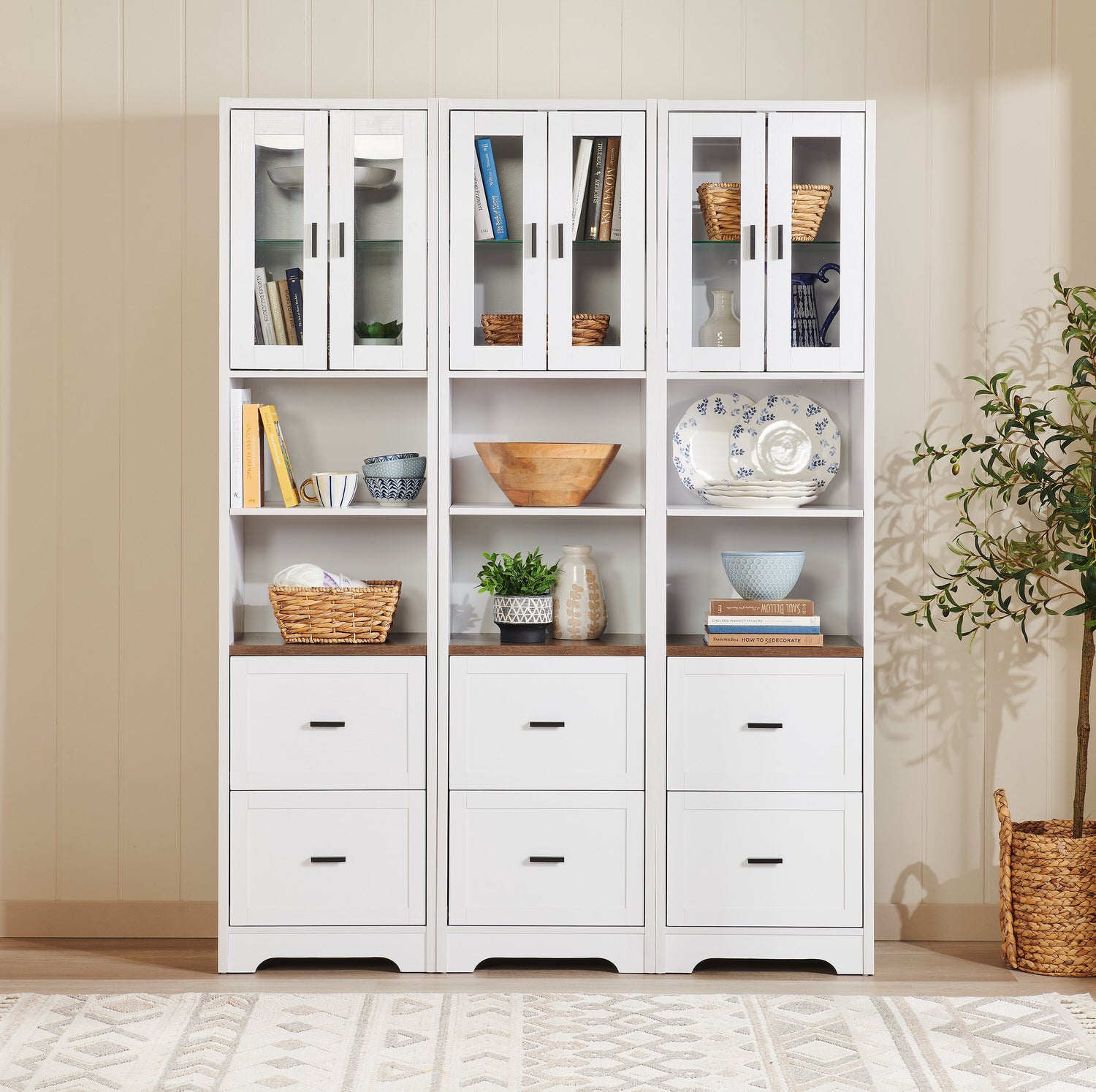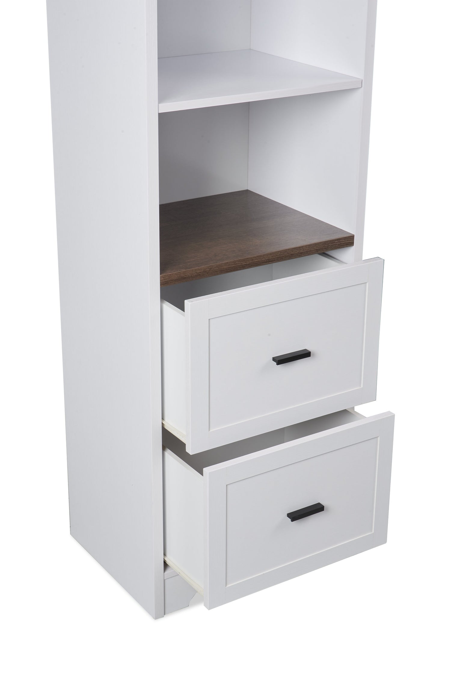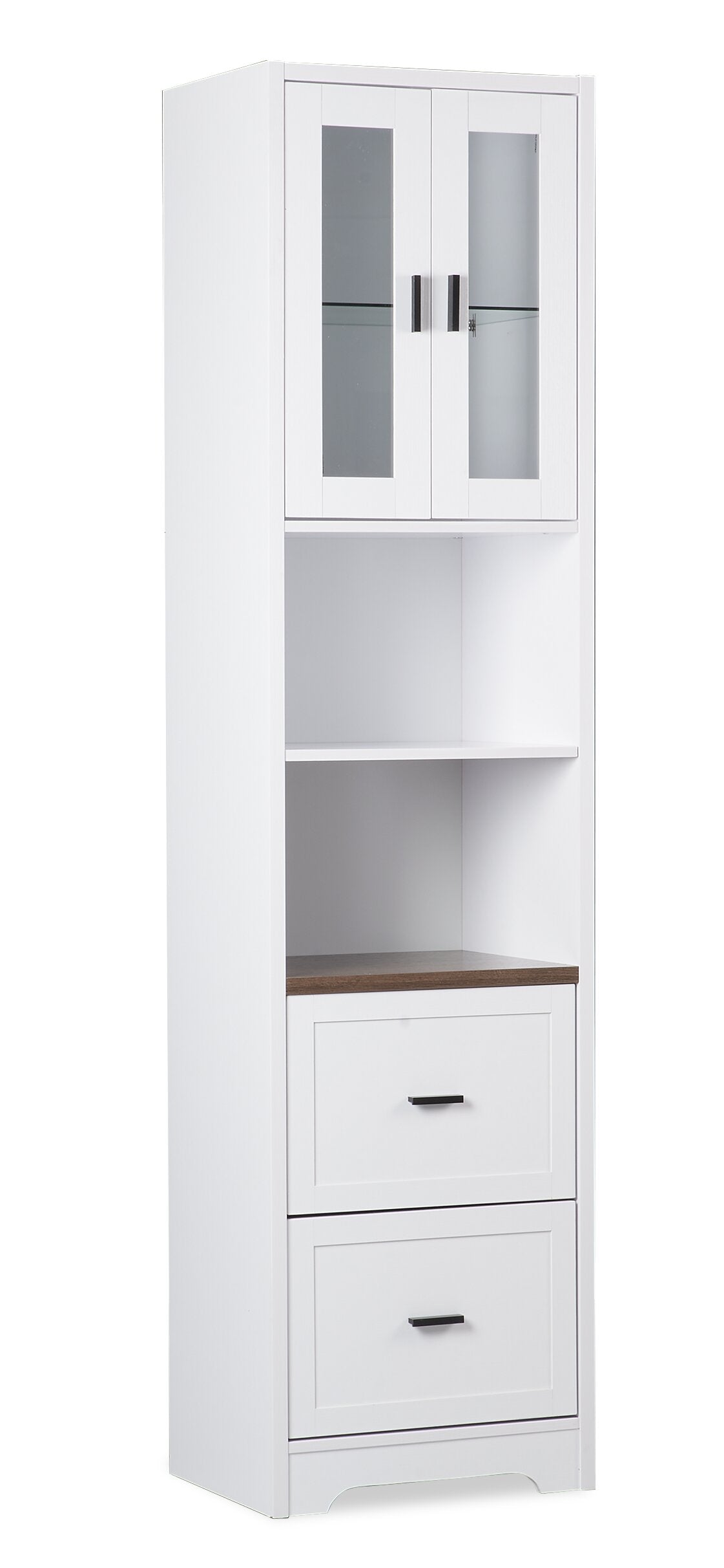 | Options de rangement | Deux compartiments ouverts avec tablette réglable, une armoire avec porte avant vitrée deux tiroirs avec glissières en métal. |