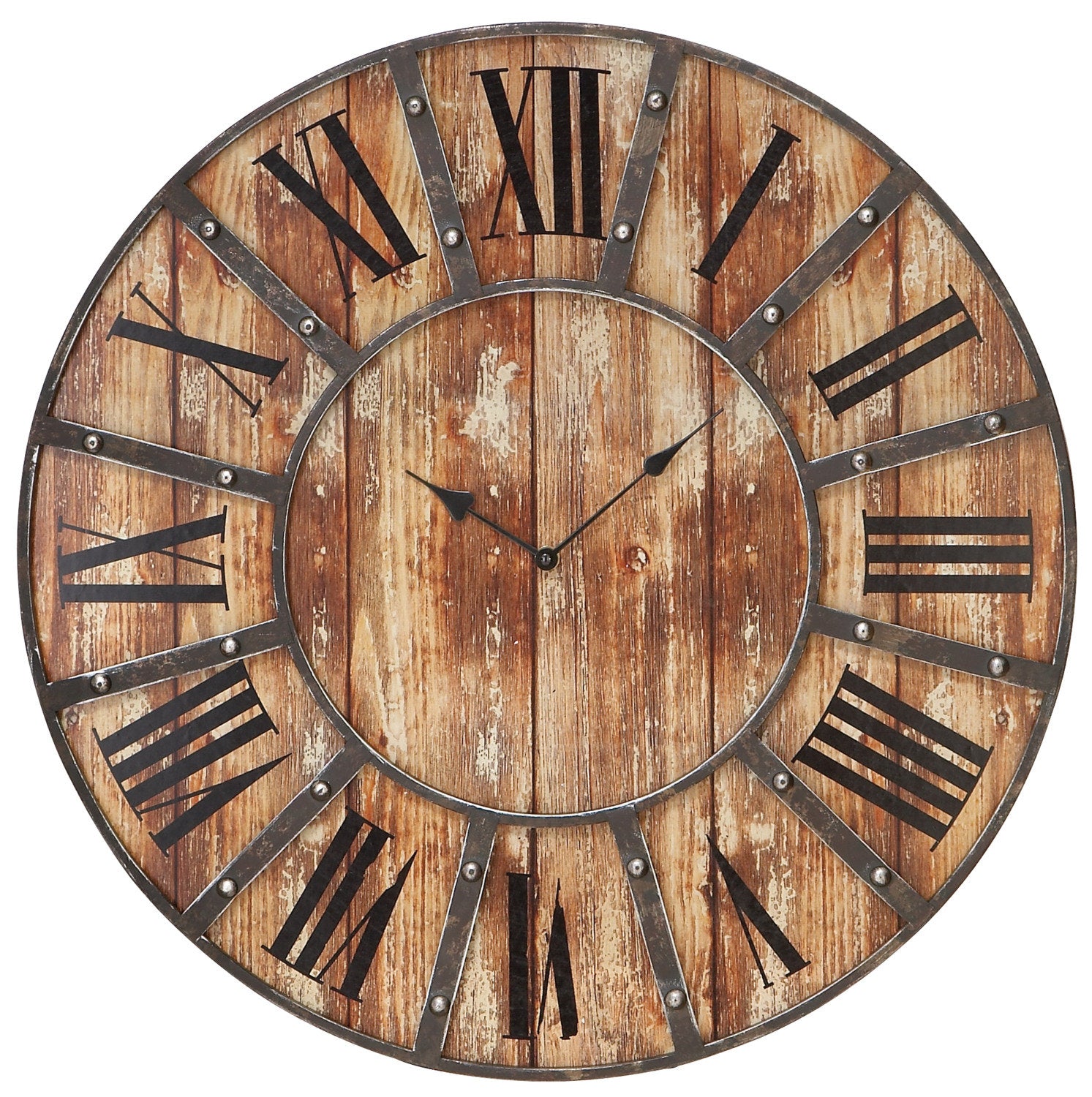 - Des planches en bois massif forment le fond de cette horloge murale de grande dimension.