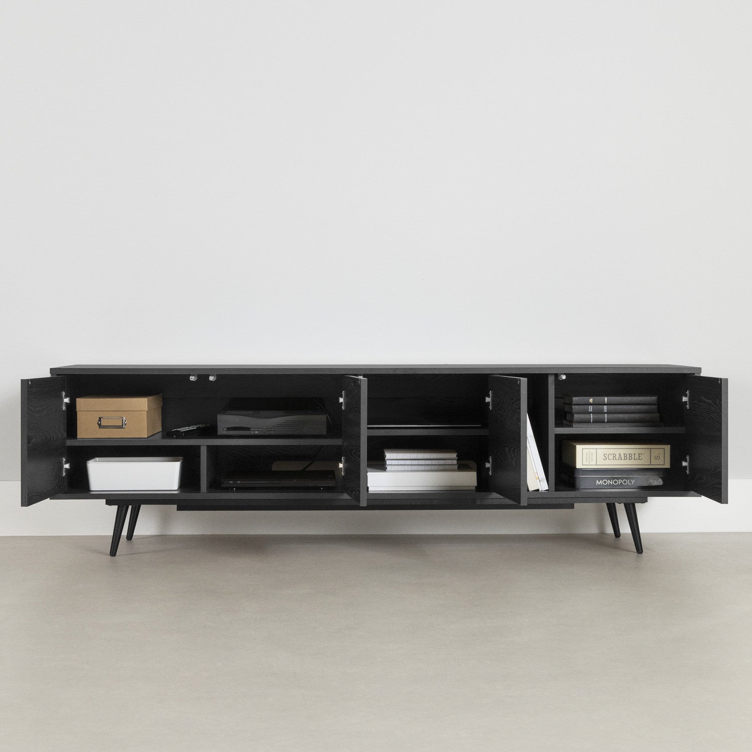 Meuble pour téléviseur Mezzy de 71 po avec portes - chêne noir