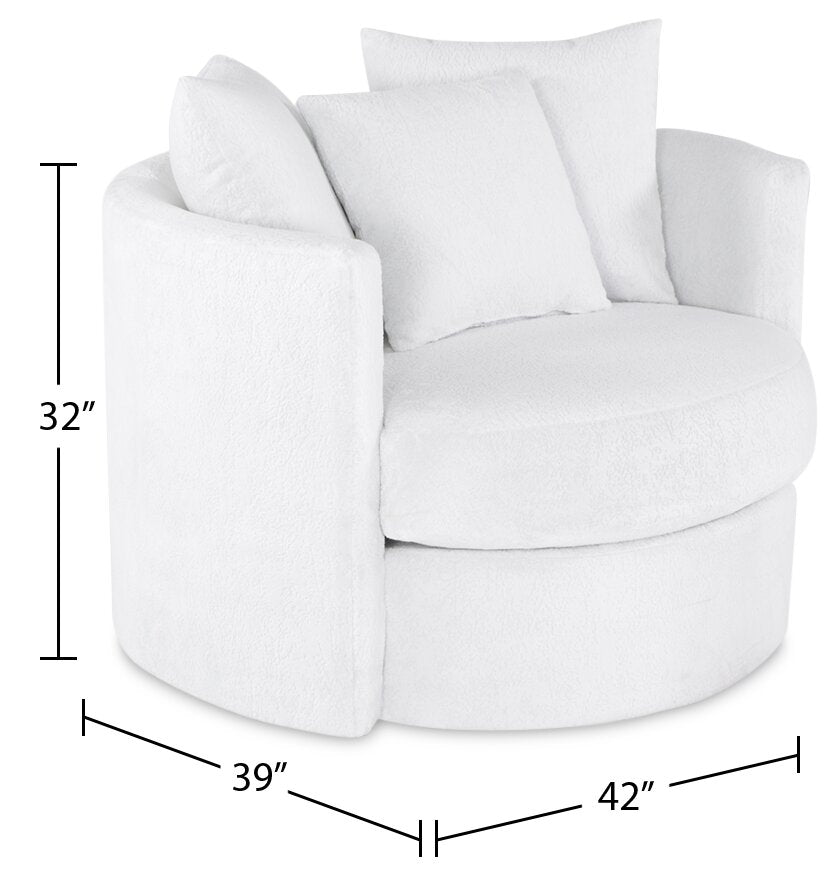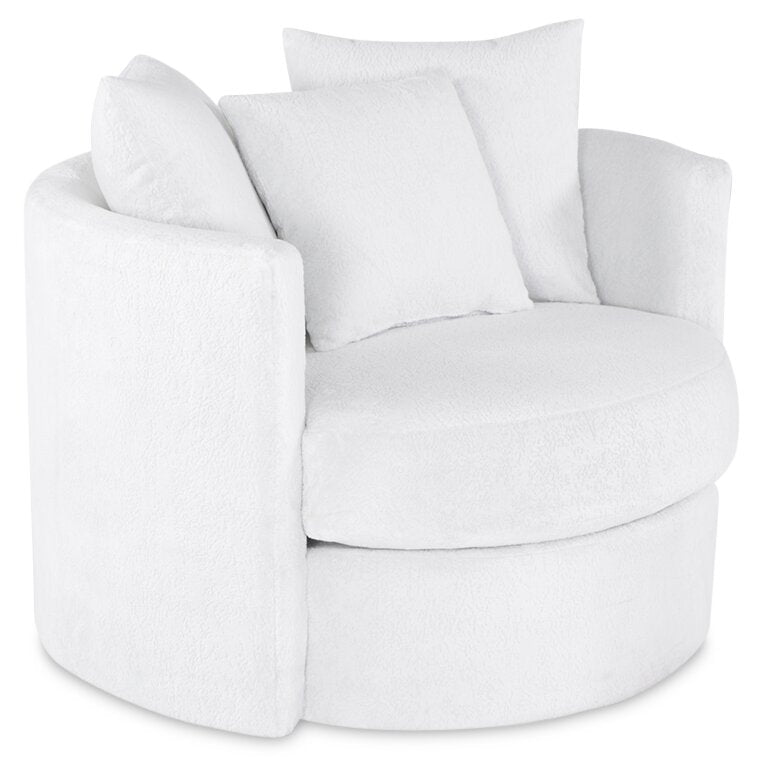 Fauteuil d’appoint pivotant Cuddler Midi de 42 po fabriqué au Canada en tissu de chenille - blanc Plush Heaven