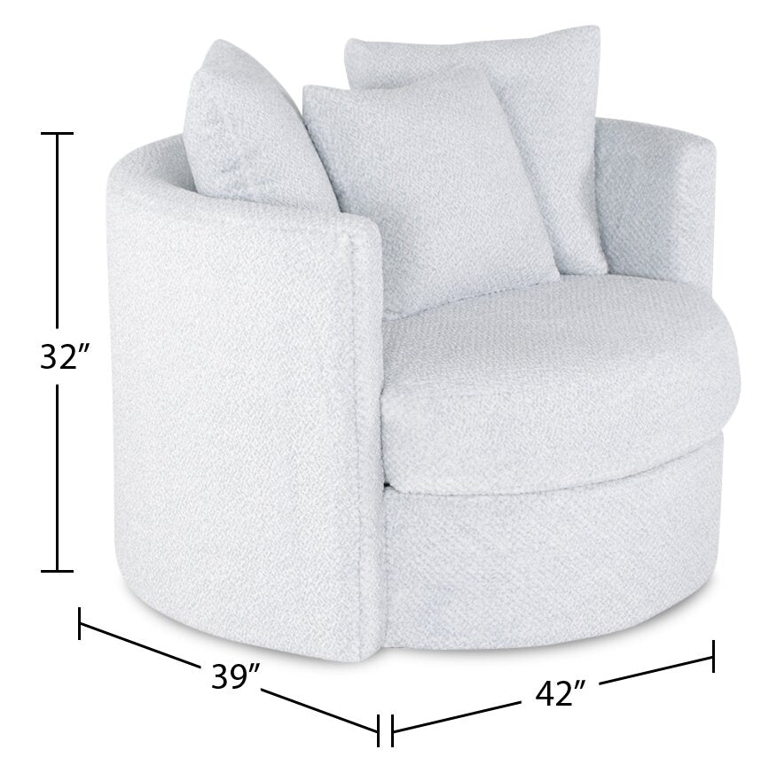 | Détails décoratifs | Les coussins moelleux et le séduisant tissu en chenille confèrent une apparence luxueuse à ce fauteuil. |