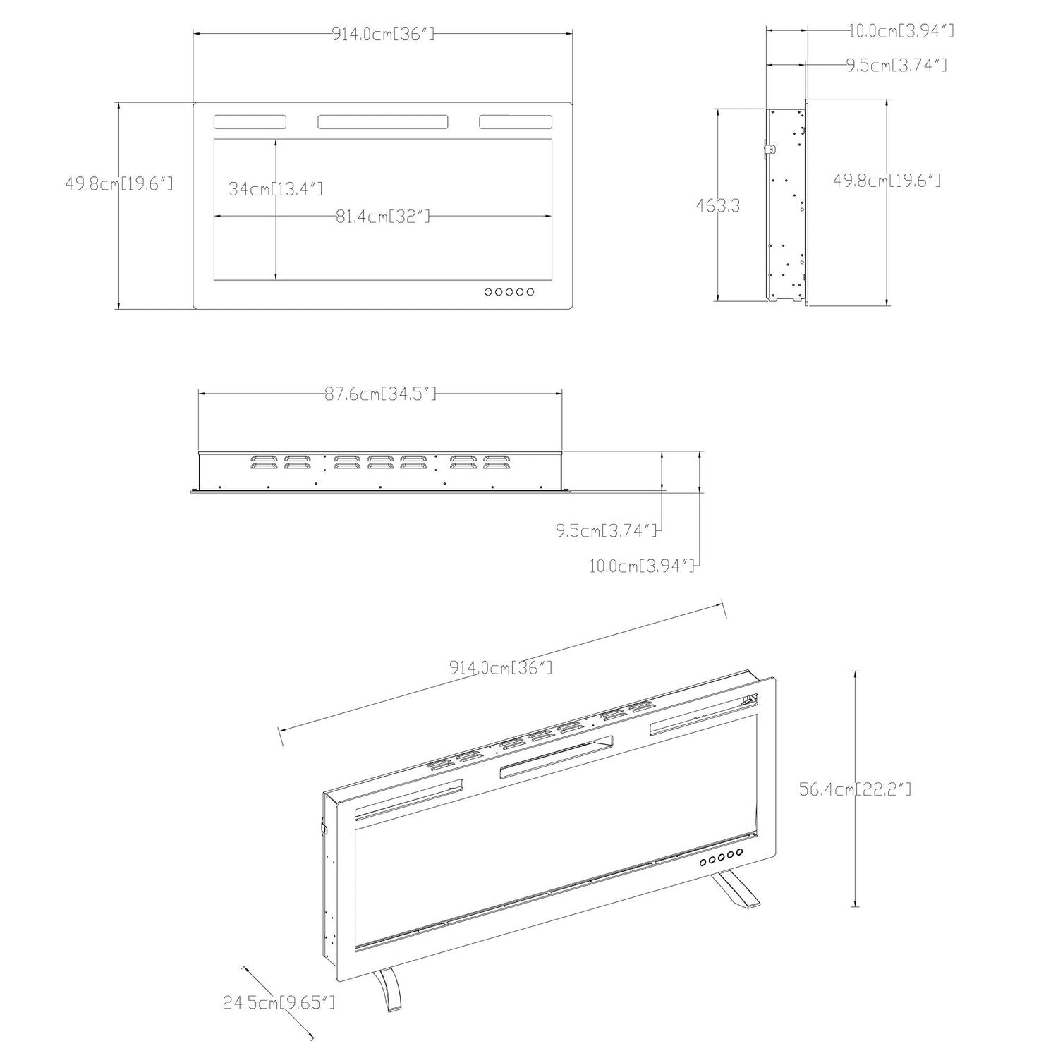 Largeur : 36 po (91,4 cm) Hauteur : 19,6 po (49,8 cm) Profondeur : 3,9 po (9,9 cm)