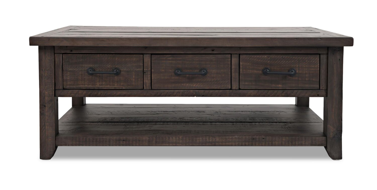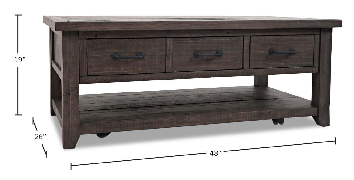 | Quincaillerie | Les poignées en métal procurent des détails rustiques à cette table. |