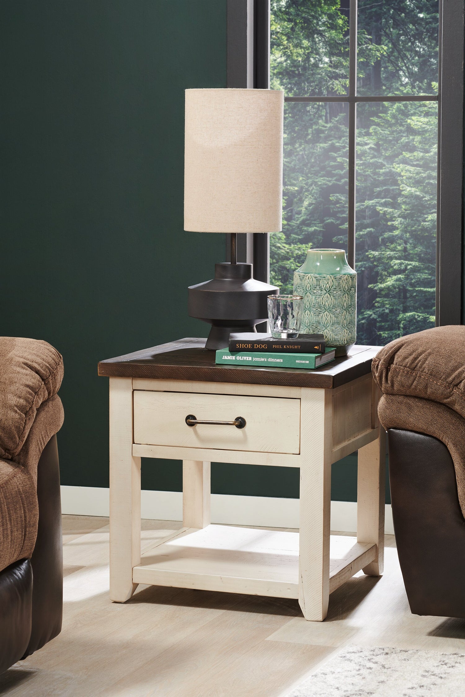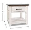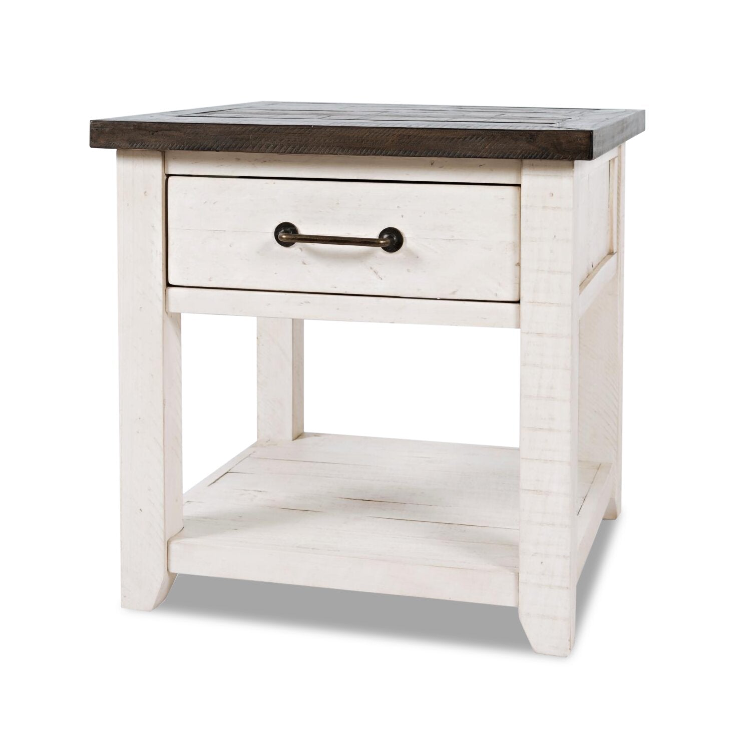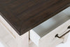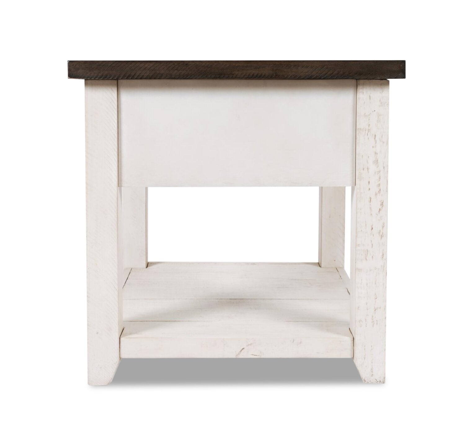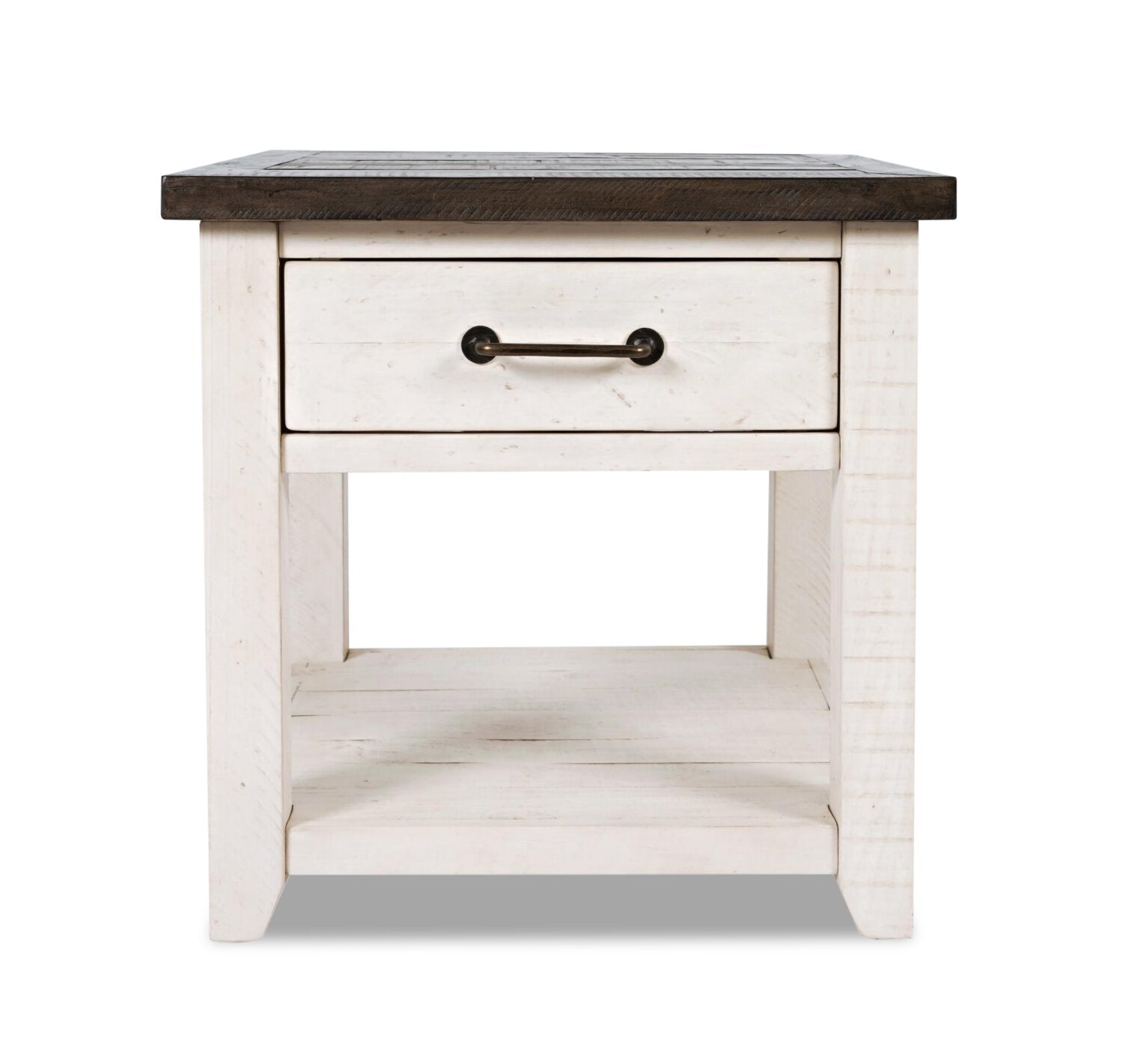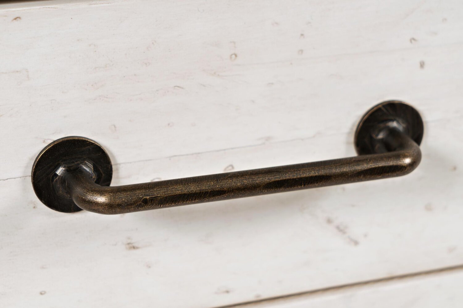 | Quincaillerie | Les poignées en métal procurent des détails rustiques à cette table. |