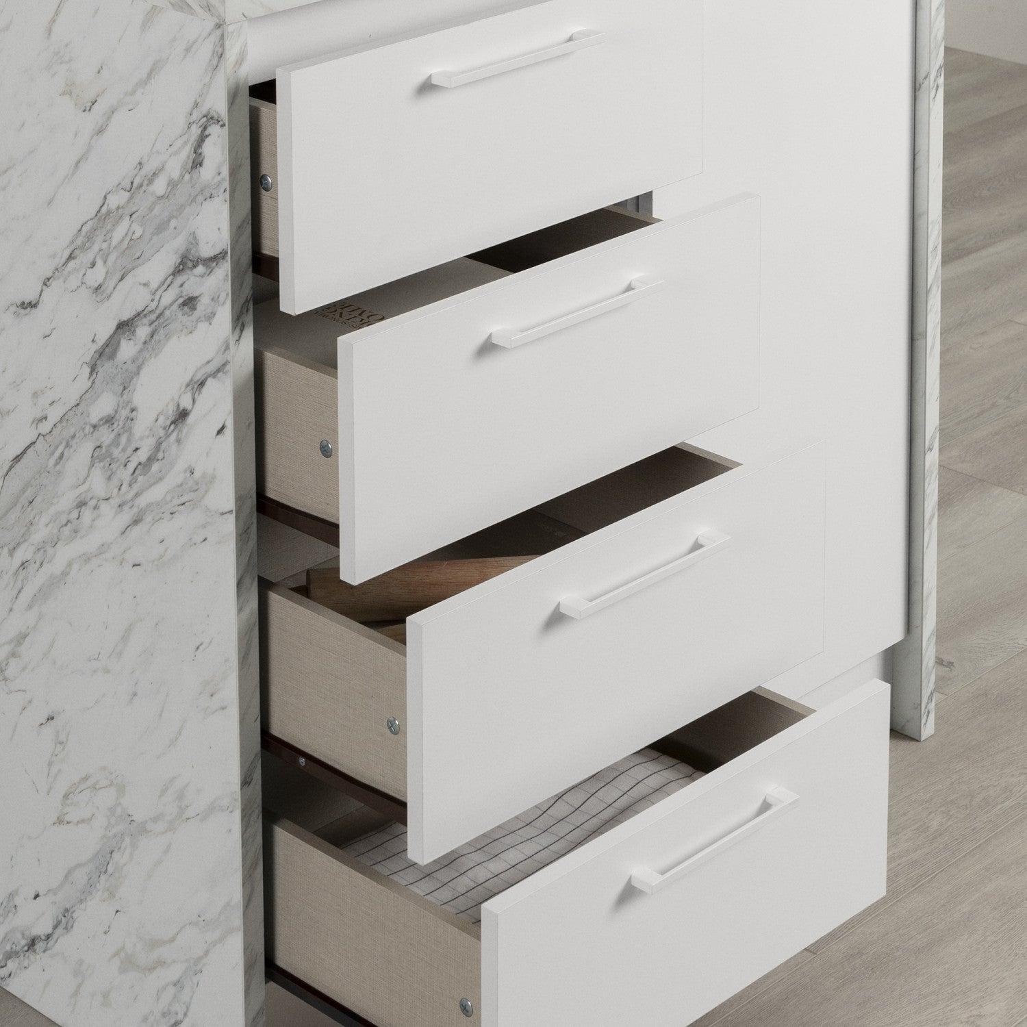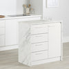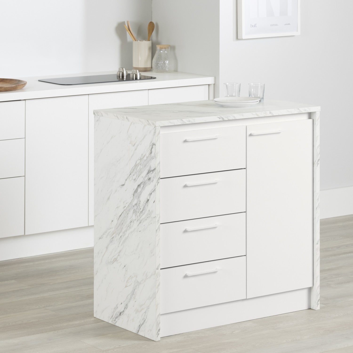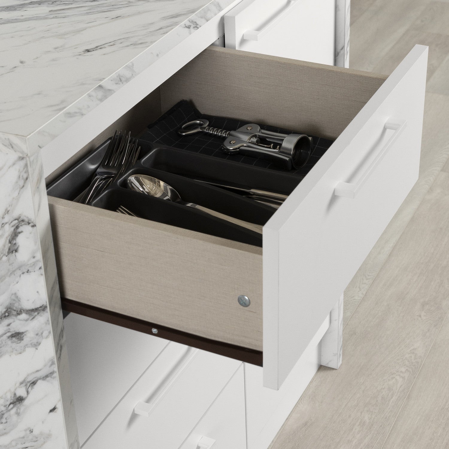 Que vous viviez dans un condo, un appartement ou une petite maison, cet îlot de cuisine compact avec rangement intégré saura vous séduire. Doté de quatre tiroirs sur glissières en métal, d’une porte avec tablette amovible et d’une surface robuste en mélamine, il vous donnera assurément envie de cuisiner de bons petits plats! Utilisez les tiroirs pour organiser vos ustensiles, vos linges à vaisselle et d’autres accessoires. Derrière la porte, placez vos petits électroménagers et réglez la tablette selon vos besoins. Pour encore plus de facilité d’utilisation, la porte possède des charnières à fermeture en douceur.