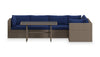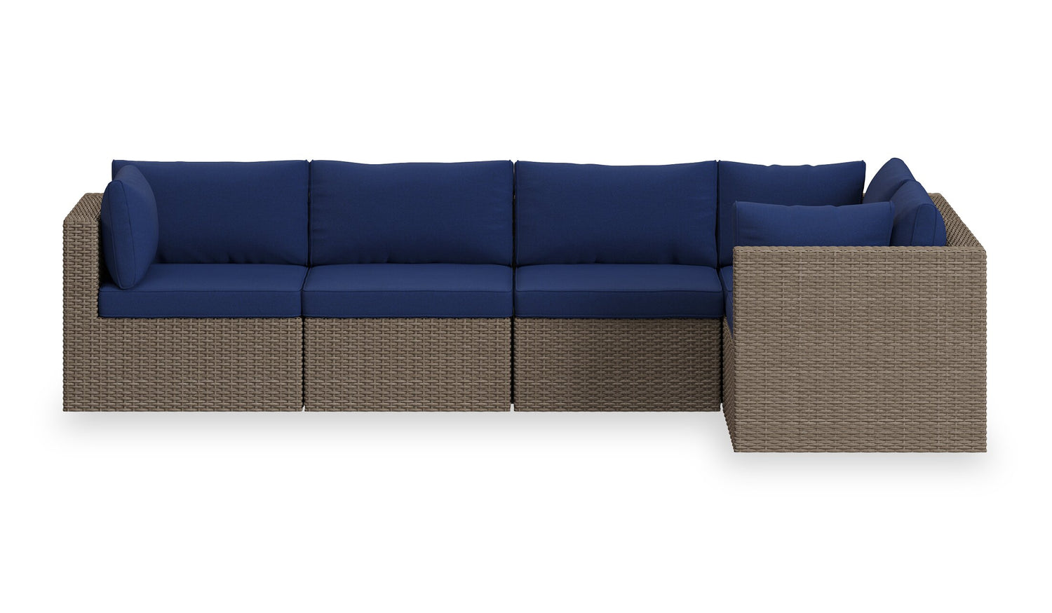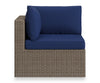 Fauteuil en coin Naples pour la terrasse à l’extérieur - osier en résine tressé à la main, résistant aux rayons UV et aux intempéries - naturel et bleu