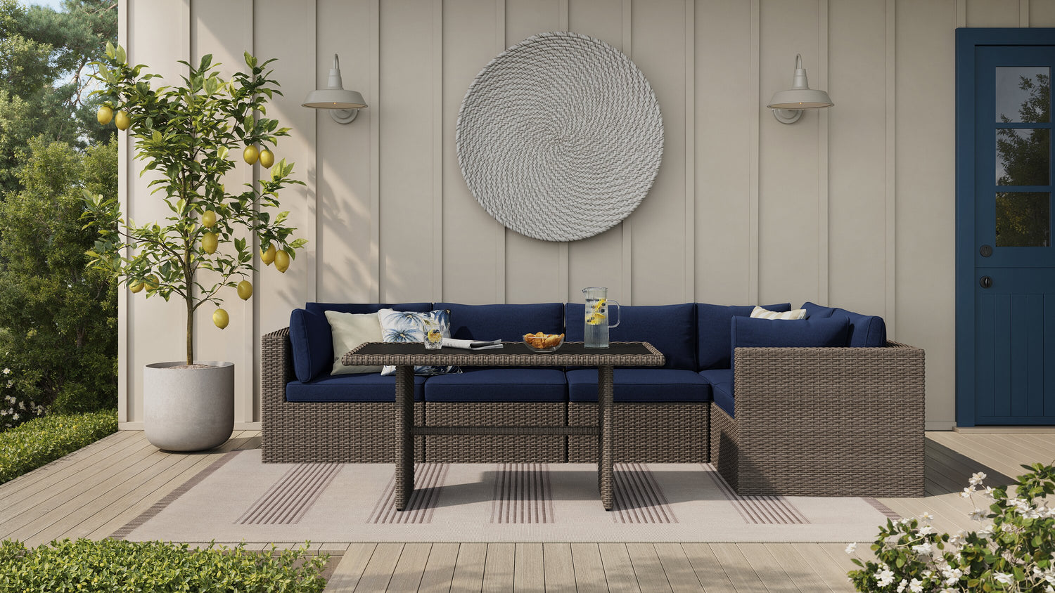 | Vendu séparément | Fauteuils et poufs Naples pour la terrasse assortis. |