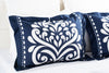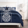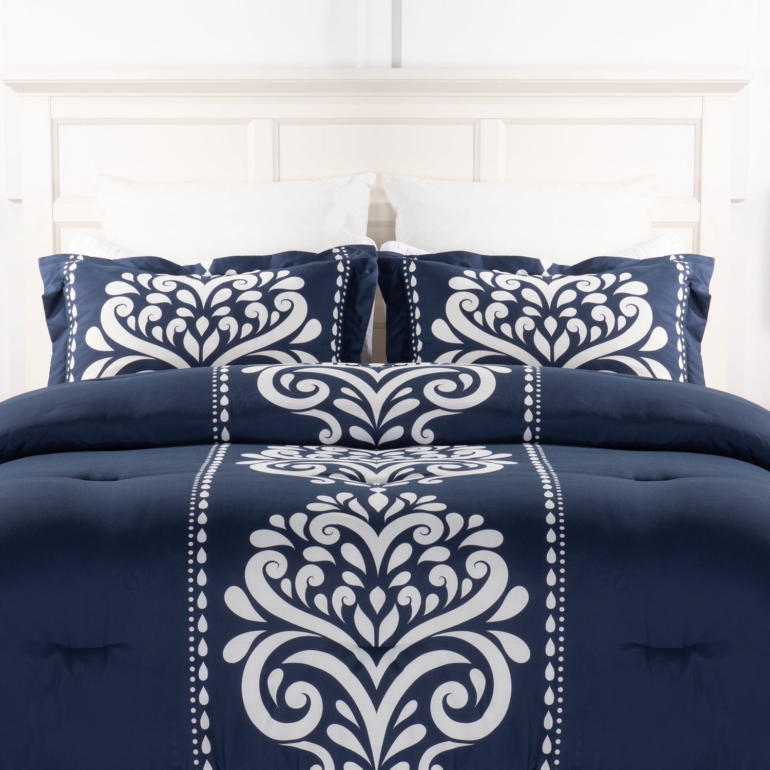 | Motif | Un motif floral damassé blanc est centré sur l'édredon et les couvre-oreillers. |