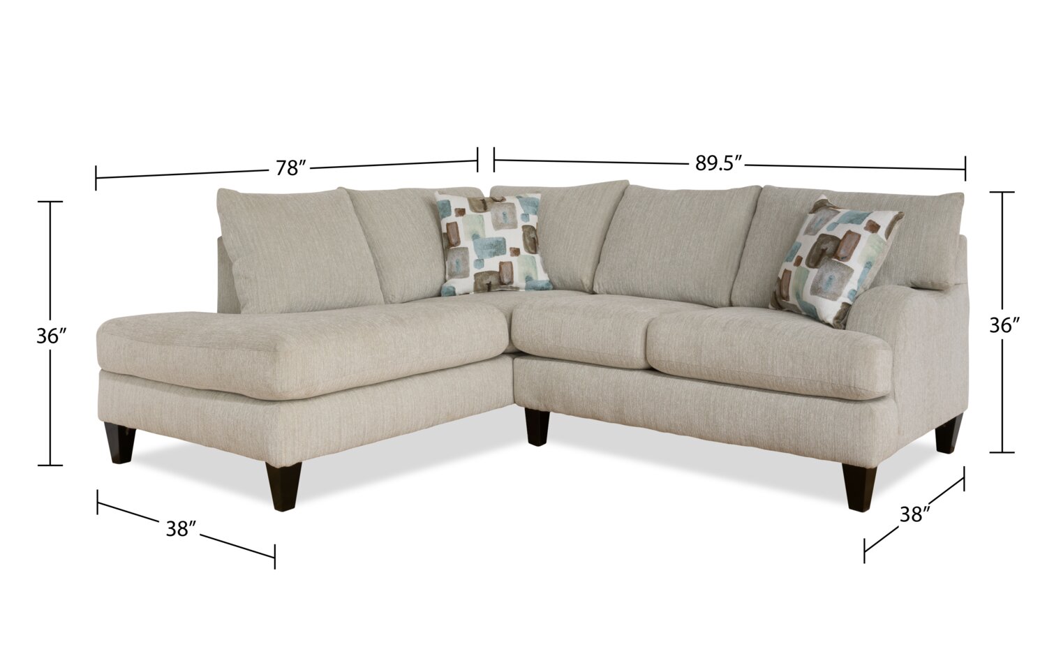 | Détails décoratifs | Un accoudoir courbé et des coussins de forme rebondie confèrent une apparence douillette et contemporaine à ce sofa sectionnel. |