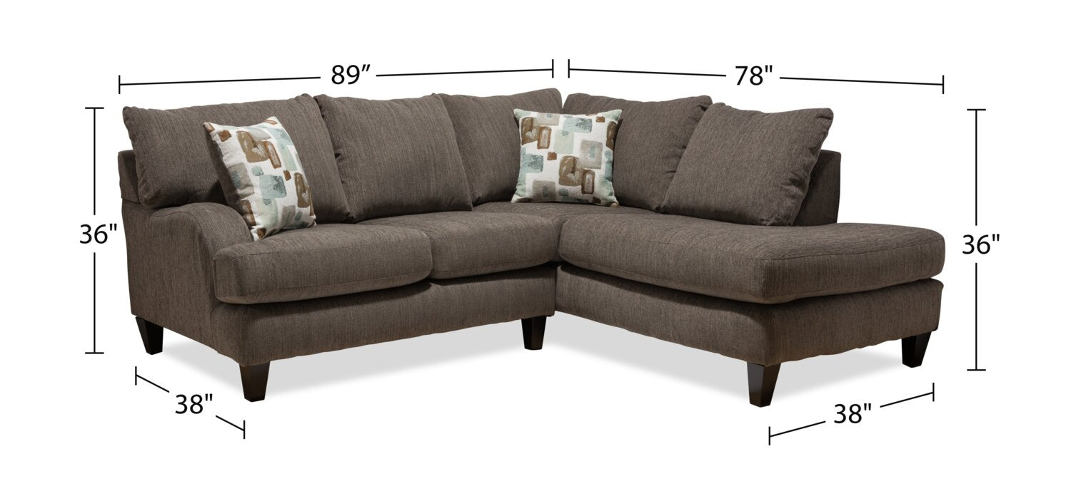 | Détails décoratifs | Un accoudoir courbé et des coussins de forme rebondie confèrent une apparence douillette et contemporaine à ce sofa sectionnel. |