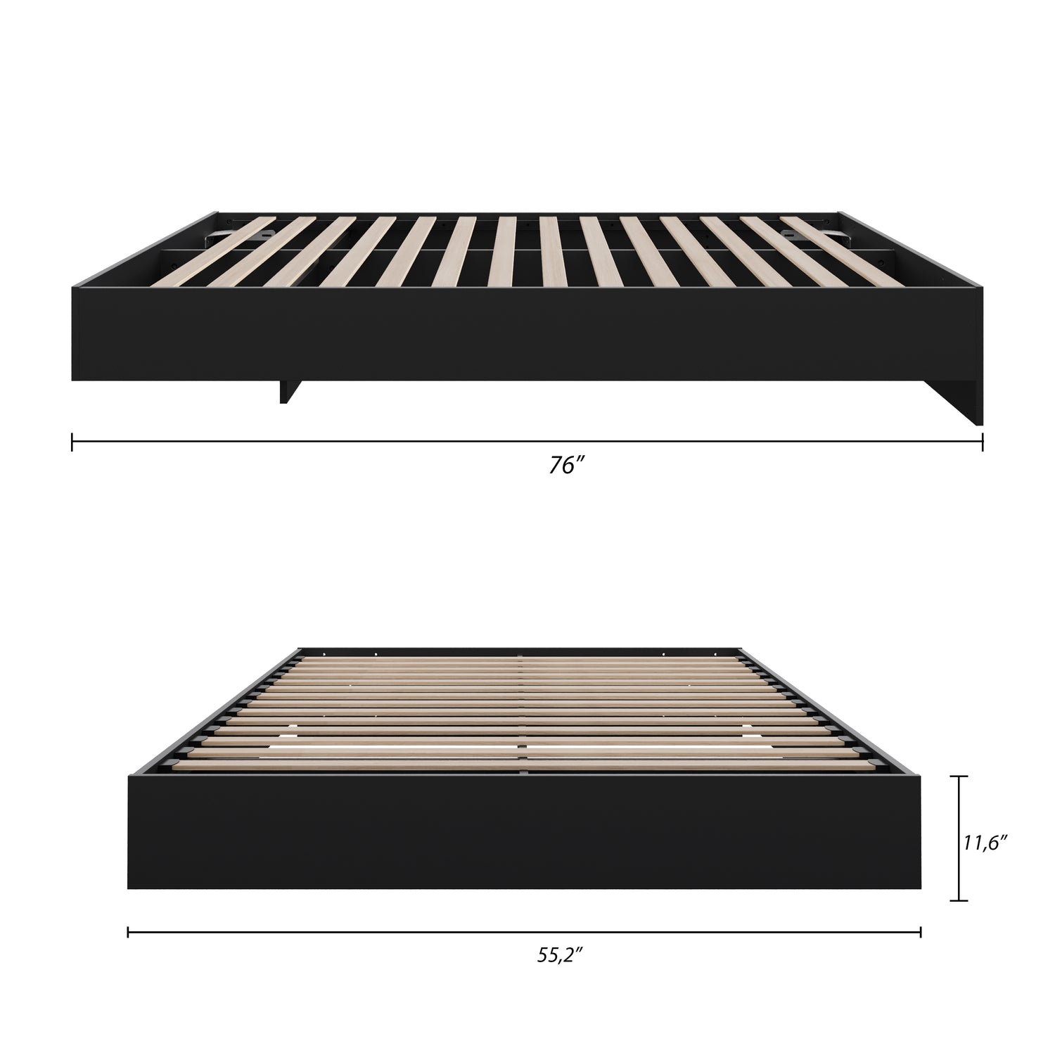 Largeur : 76 po (193,0 cm) Hauteur : 11,75 po (29,8 cm) Profondeur : 55,25 po (140,3 cm)