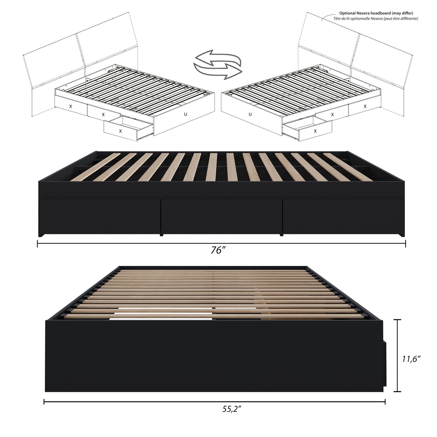 Largeur : 76 po (193,0 cm) Hauteur : 11,75 po (29,8 cm) Profondeur : 56 po (142,2 cm)