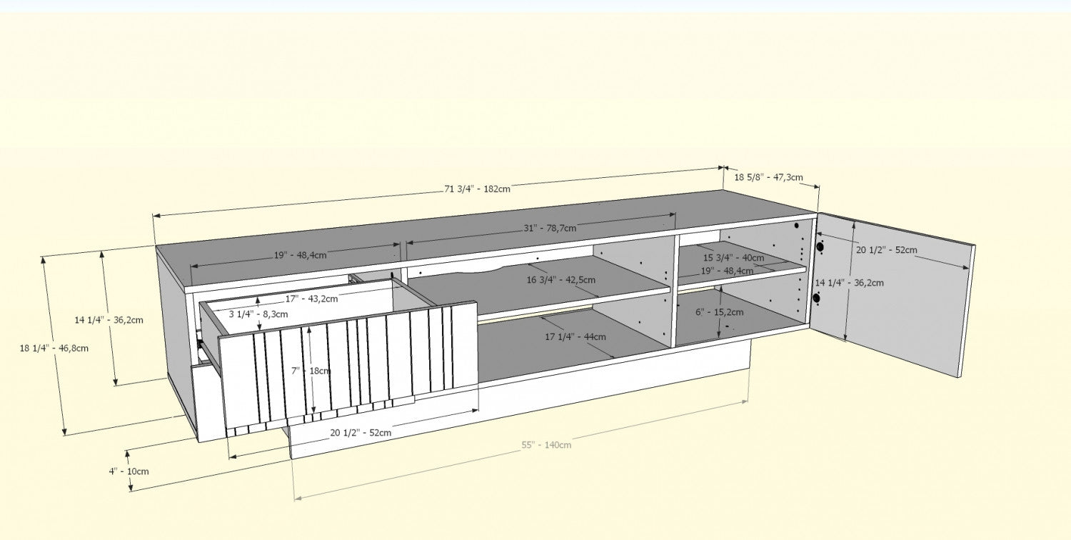 Largeur : 71,75 po (182,2 cm) Hauteur : 18,38 po (46,7 cm) Profondeur : 18,63 po (47,3 cm)