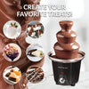 Impressionnez vos invités avec élégance et style en toute occasion spéciale. Cette fontaine de chocolat crée une cascade de délice gourmand qui mettra l’eau à la bouche de manière amusante en toute occasion. Versez simplement la quantité recommandée de chocolat noir ou blanc fondu dans la base et allumez le moteur. Admirez le chocolat tandis qu’il monte jusqu’au sommet de la tour où il tombe en cascade sur chaque niveau pour vous en mettre plein la vue. Donnez à vos invités des fraises fraîches, des guimauves, des bretzels, des biscuits et d’autres gâteries pour qu’ils les trempent dans le chocolat. Vous pouvez aussi utiliser du fromage et de la sauce barbecue. La fontaine se démonte facilement pour un nettoyage rapide. Créez un superbe ajout à n’importe quelle table de salle à manger ou créez une présentation impressionnante lors d’un évènement ou d’une réunion décontractée entre amis ou en famille.