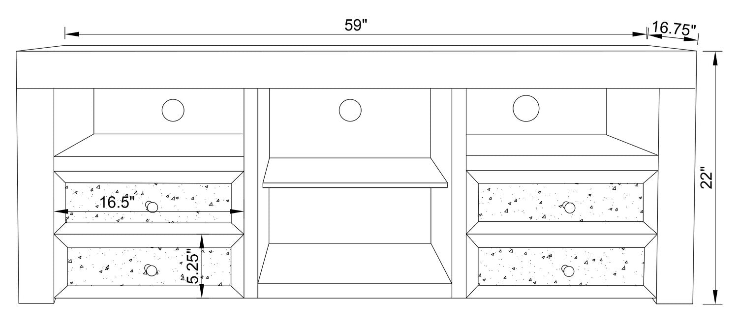 Largeur : 59,1 po (150,1 cm) Hauteur : 22 po (55,9 cm) Profondeur : 16,7 po (42,4 cm)