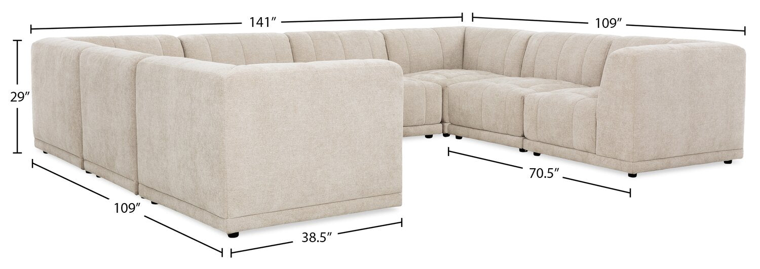 | Vendu séparément | Fauteuils sans accoudoirs, fauteuils en coin et poufs modulaires Oaklyn additionnels. |