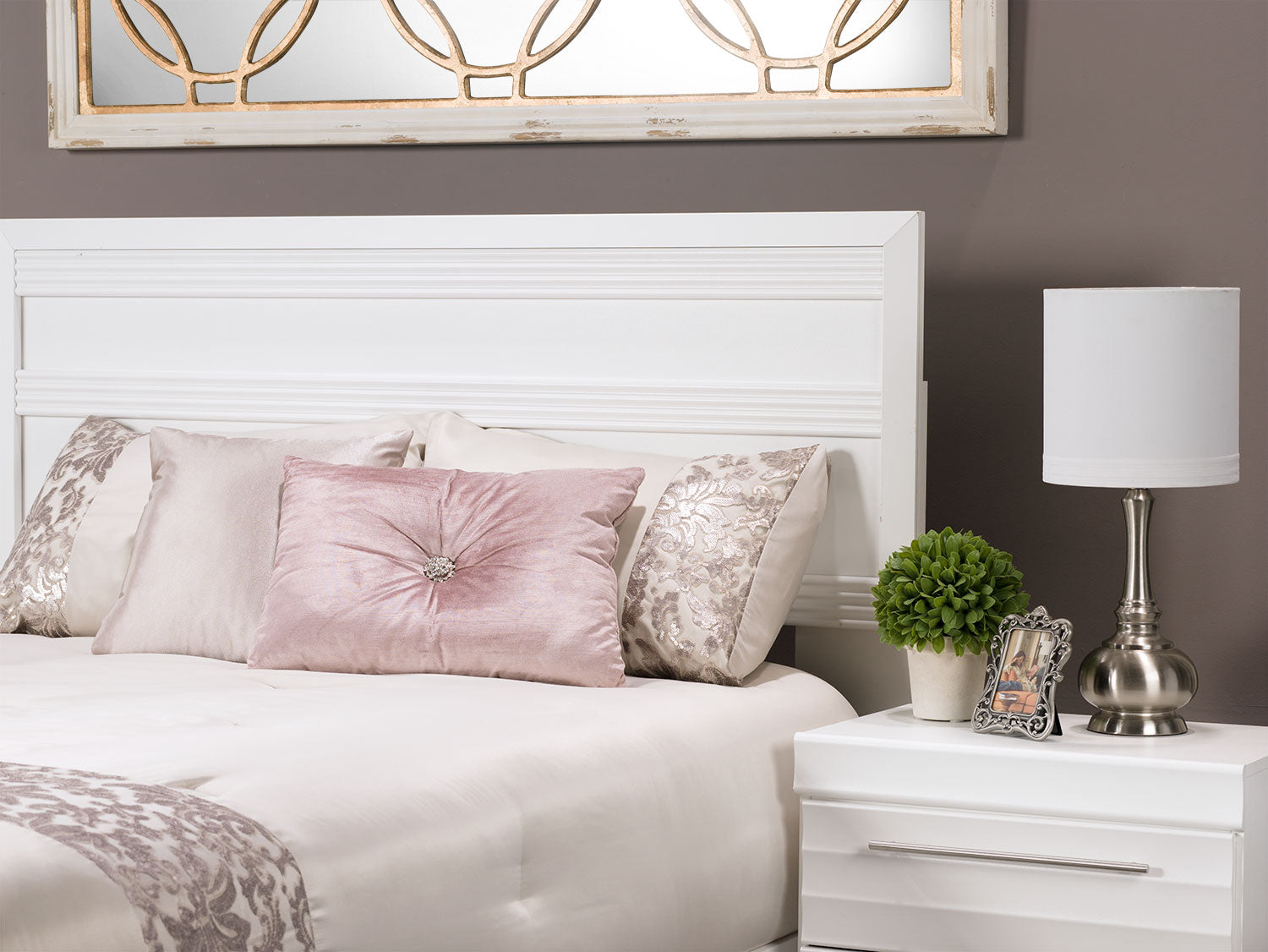 Lit plateforme de rangement Olivia fabriqué au Canada avec tête de lit et cadre de lit, blanc - format grand lit
