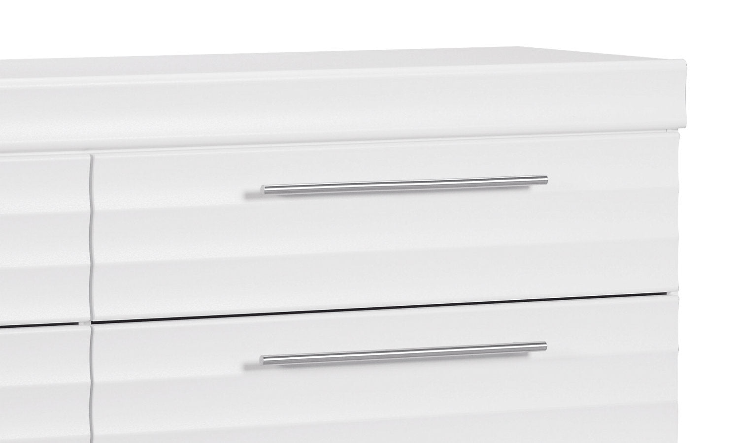 Les élégantes poignées barres en étain ornent chaque tiroir afin d'offrir de la polyvalence à cet ensemble Olivia.