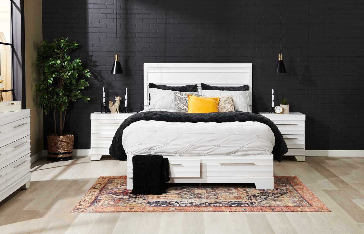 Lit plateforme de rangement Olivia fabriqué au Canada avec tête de lit et cadre de lit, blanc - format lit double