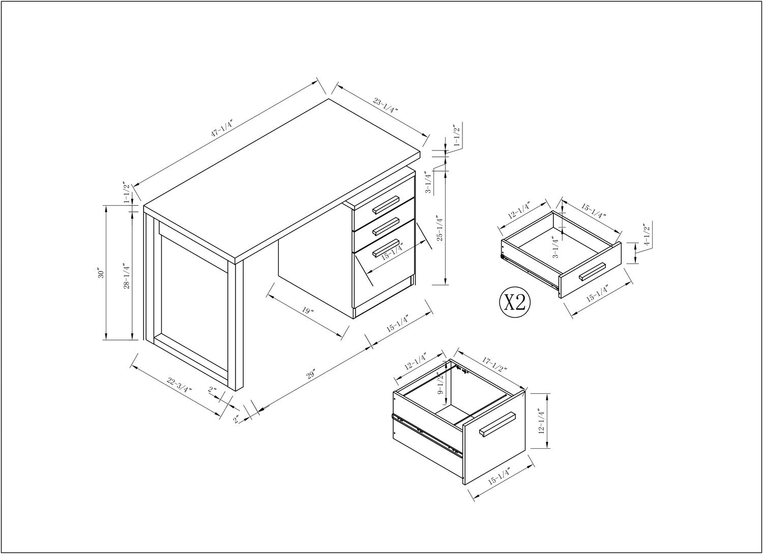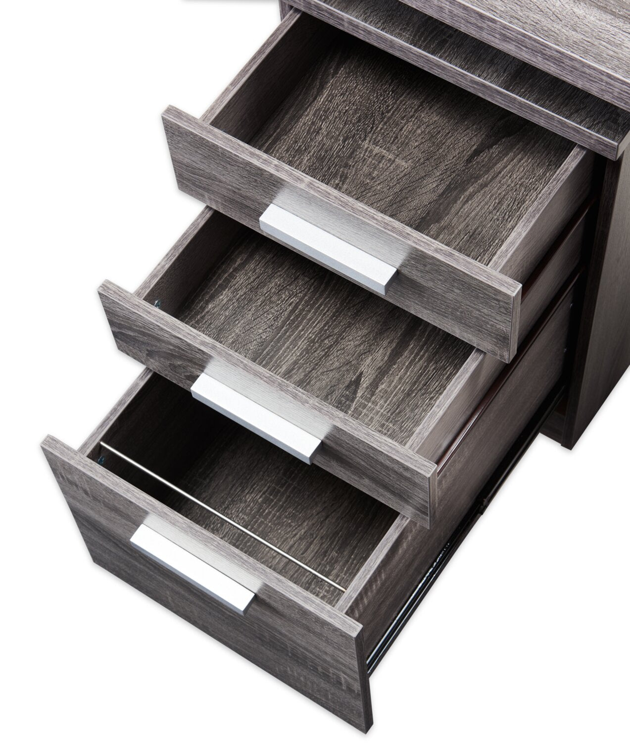 | Détails décoratifs | Les poignées de couleur argentée sur les tiroirs s'assortissent aux pattes pour conférer une touche industrielle à ce meuble. |