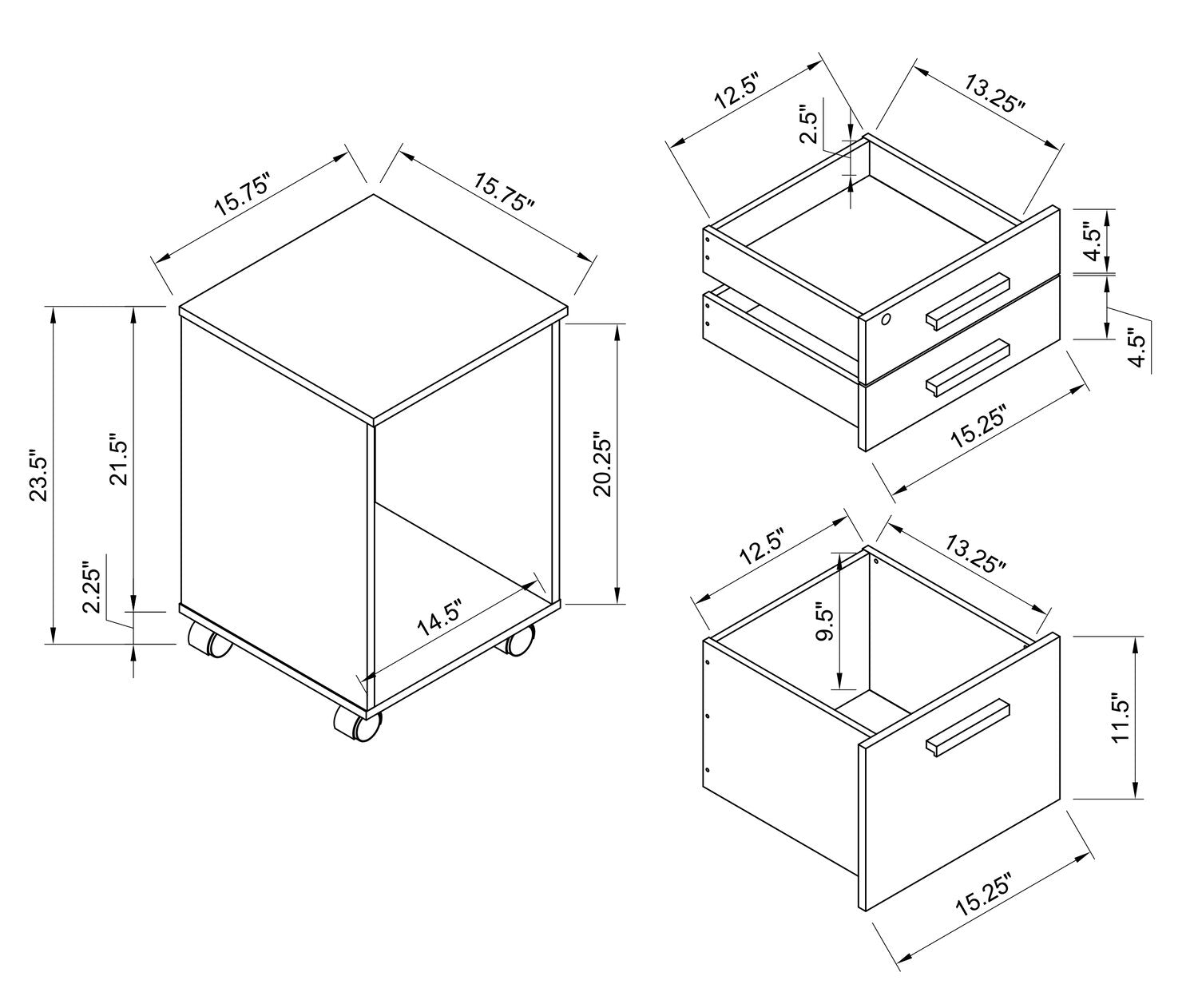 Largeur : 15,75 po (40,0 cm) Hauteur : 23,5 po (59,7 cm) Profondeur : 19,75 po (50,2 cm)