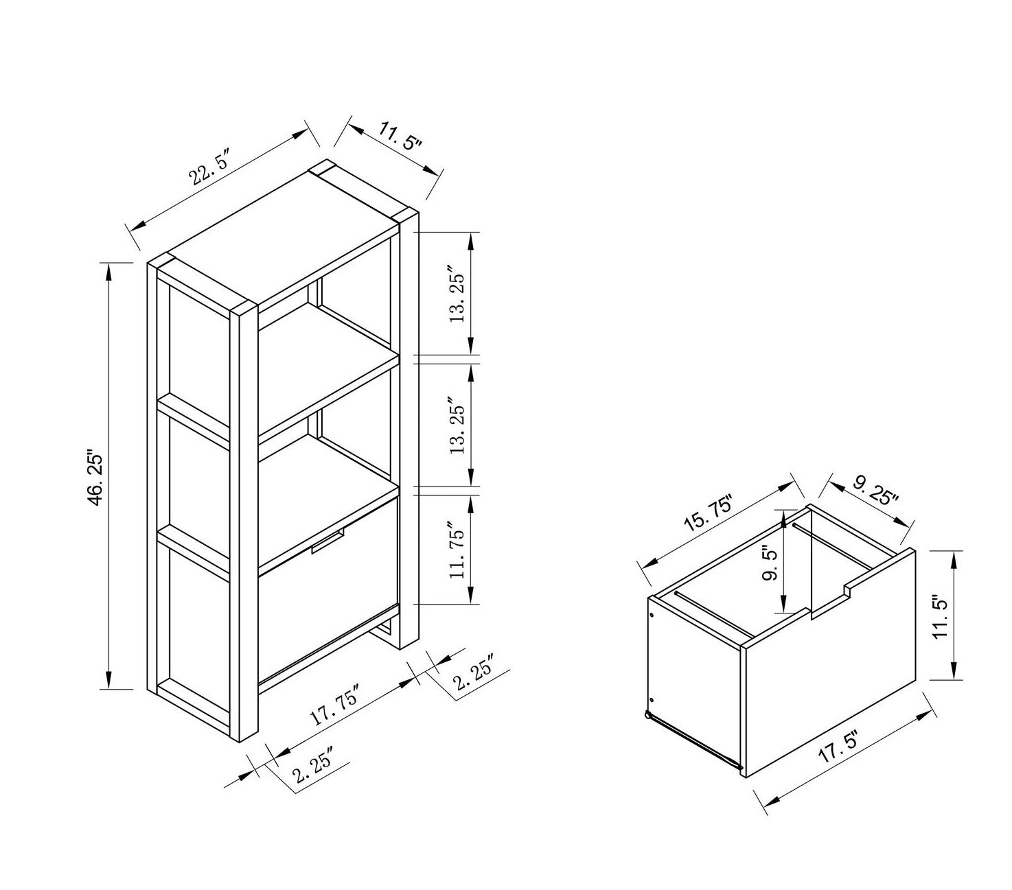 Largeur : 22,5 po (57,2 cm) Hauteur : 46,25 po (117,5 cm) Profondeur : 11,5 po (29,2 cm)
