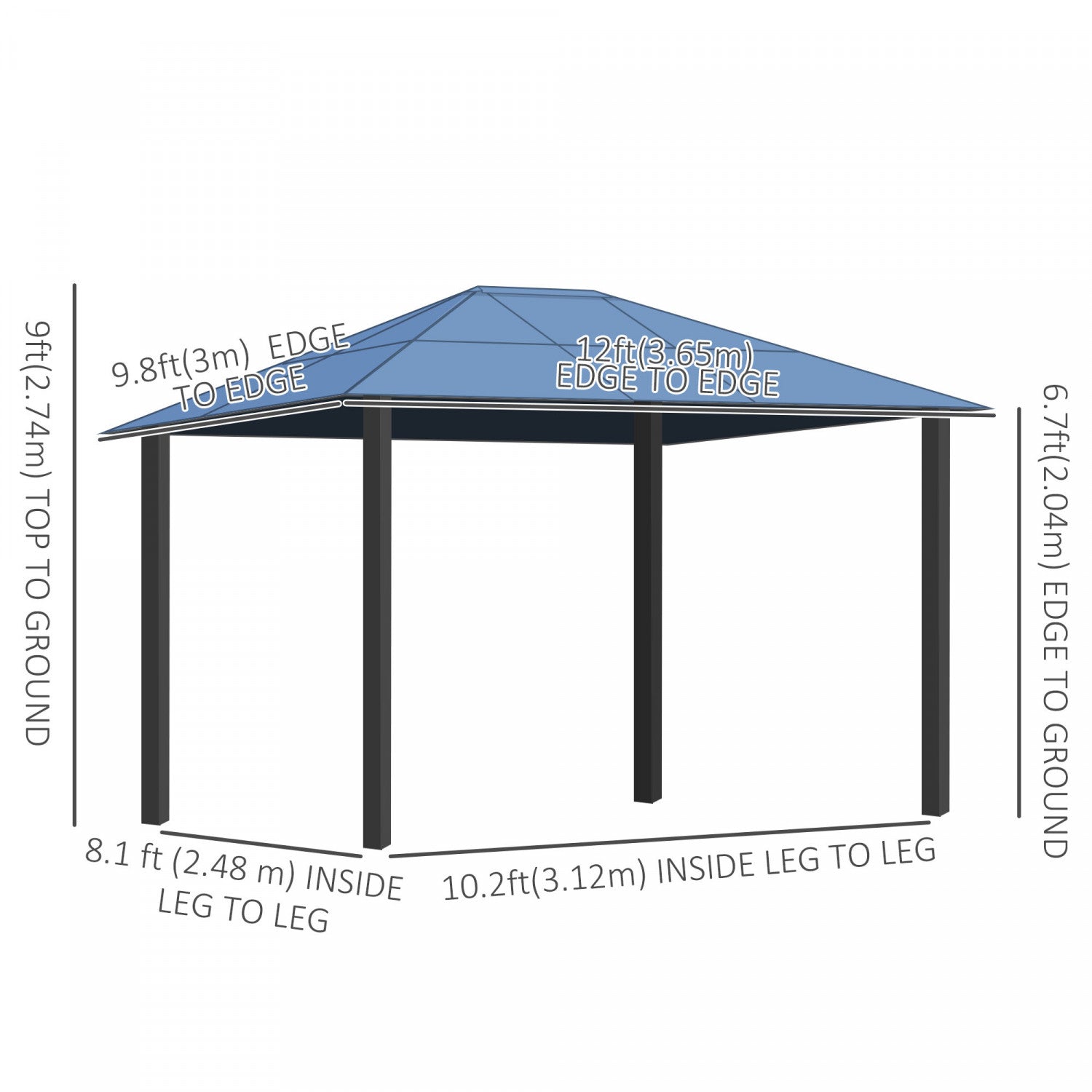 - Dimensions totales : 12'L x 9.75'l x 8.75'H