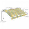 | Renseignements supplémentaires | - Couleur : jaune et gris - Materiaux : polyester 280 GSM, aluminium, metal - Dimensions hors tout : 116,9" L x 78,7" P (297 x 200 cm) - Manivelle : 59,1" L (150 cm) - Longueur du cordon d'alimentation : 4,4 pi (1,35 m) - Hauteur d'installation recommandee : 8,2 a 11,5 pieds (2,5 a 3,5 m) - Tension nominale : AC 110 V-240 V, 50/60 Hz - Niveau de protection contre le vent : 2 - Etiquette de l'article : 840-266V81MX ; |