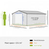 | Key Features | ●Conception spacieuse pour ranger tous vos outils d'exterieur, votre equipement et votre materiel de jardinage ● Fabrique en acier de couleur avec une couche de finition protectrice pour plus de durabilite et de stabilite ●Toit en pente pour empecher l'accumulation d'eau ●Portes coulissantes doubles pour un acces facile a l'interieur et a l'exterieur ●Quatre fentes d'aeration assurent une bonne circulation de l'air ●Fondation de plancher incluse pour une structure uniforme au sol ●Assemblage requis, veuillez utiliser des gants lors de l'installation |