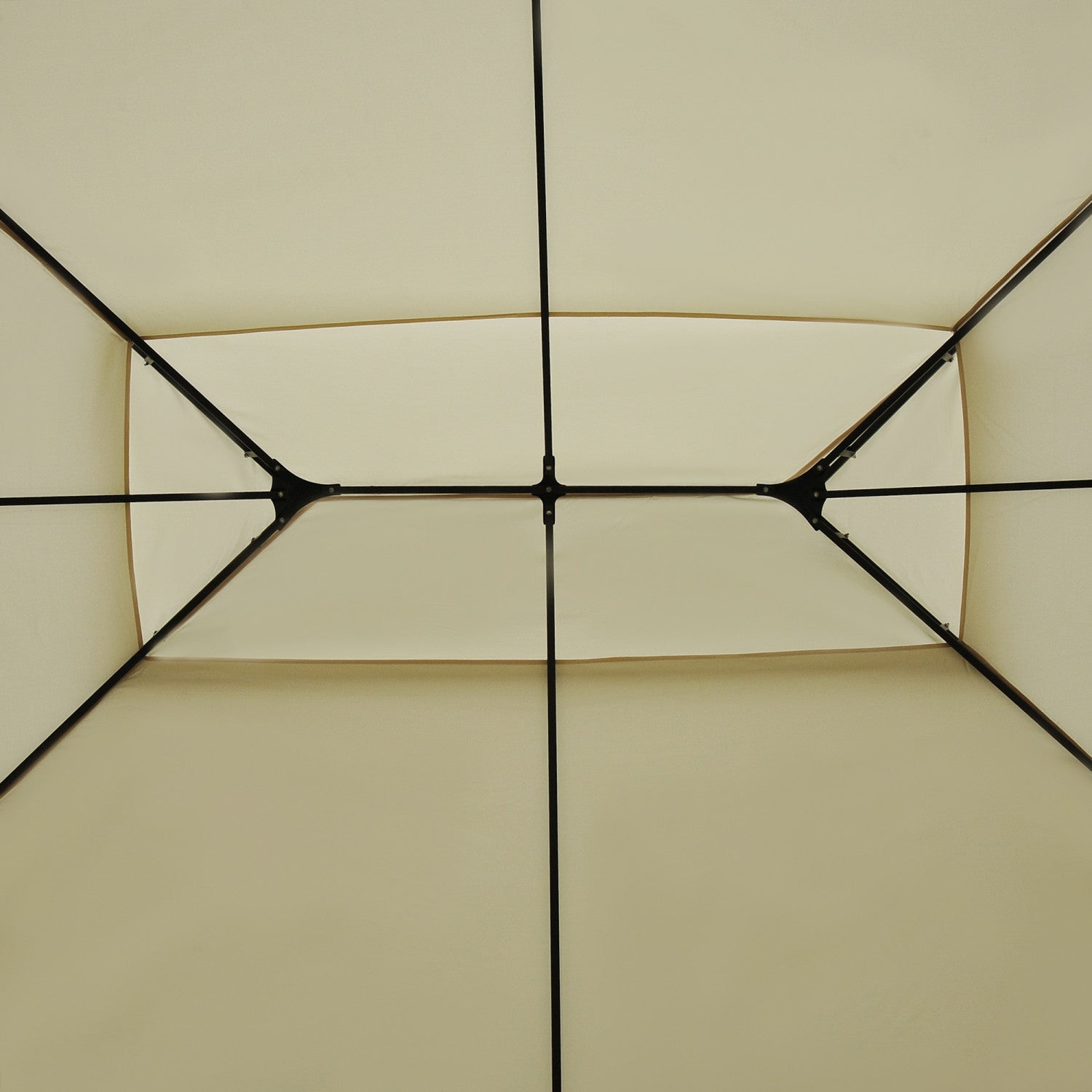 | Renseignements supplémentaires | ● Couleur : blanc creme, cadre noir ; ● Materiau : Acier, tissu polyester ; ● Dimensions globales : 9,75'L x 13'W x 8,75'H ; ● Hauteur de l'avant-toit : 6,5' ; ● Poids net : 70 lbs ; ● Distance entre les colonnes : 5,7'L x 8,4'W. |