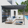 | Key Features | - Ideal pour organiser une fete type mariage, bapteme, anniversaire, etc...; - Conception et fabrication avec des materiaux rigides de qualite : alliage d'aluminium, polycarbonate; - Toit rigide en panneaux de polycarbonate pour une protection optimale contre la pluie, le vent, les rayons UV du soleil; - Structure renforcee en alliage d'aluminium, poteaux ornes de chapiteaux supports du toit : robustesse et elegance au rendez-vous; - Toit equipe de goulots afin de bien evacuer l'eau de pluie; - Multiples possiblites d'installations : ecartements poteaux, position plus avancee ou reculee, inclinaison du toit ajustable; - Note : pergola pavillon de jardin a adosser obligatoirement a un mur |