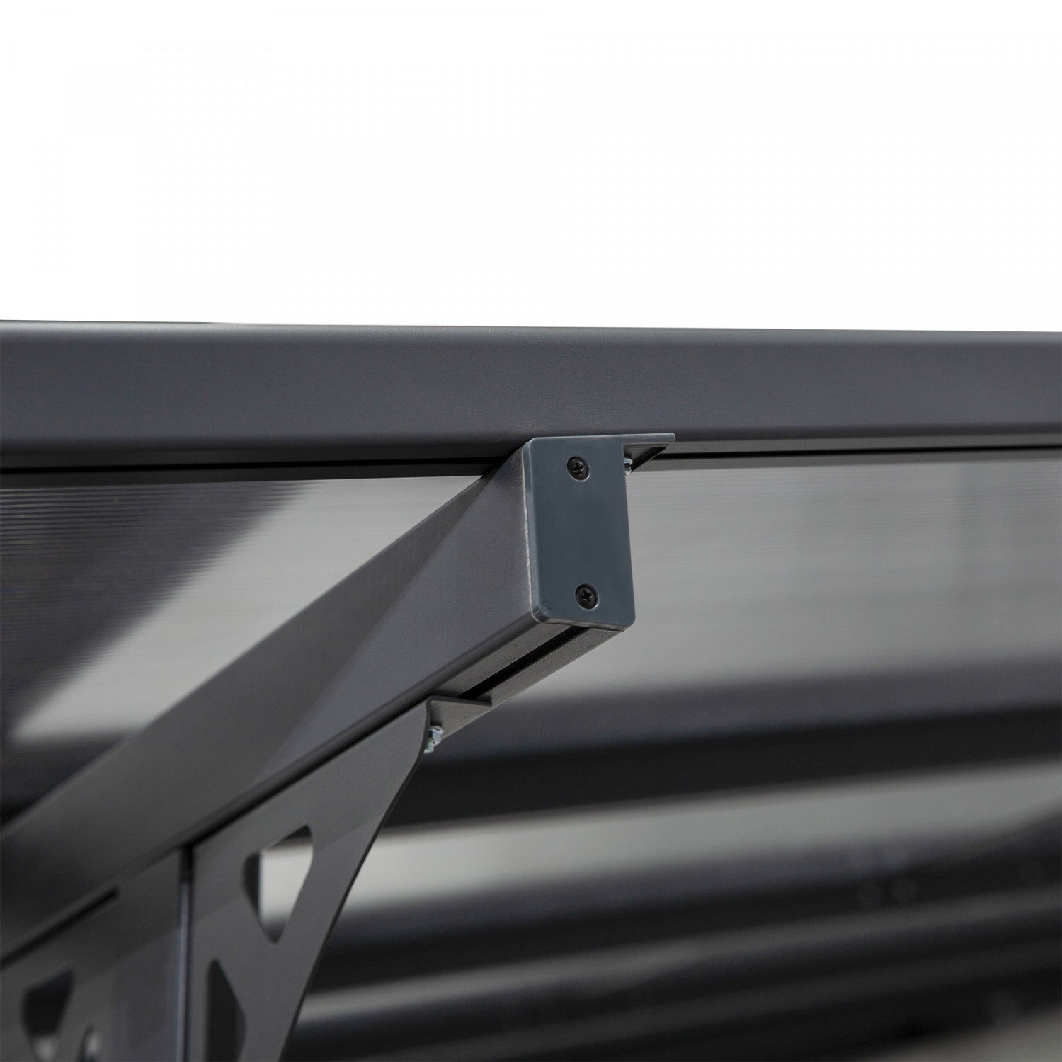 | Renseignements supplémentaires | - Couleur : gris; - Materiaux : aluminium, panneaux de polycarbonate; - Dim. totales : 171.25"L x 118"l; - Dim. poteaux : 2.75"L x 1.5"l x 74.75"H; - Hauteur d'installation recommandee : 88.5"-106.25"; - Distance reglable poteaux : 94.5" - 112.25" (avant et arriere) , 11.75" - 17.75"(gauche et droite); - Charge max. recommandee toit : 10 lbs/ft² - Ref. : 84C-182 |