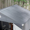 | Renseignements supplémentaires | - Couleur : gris fonce ; - Materiau : PP, aluminium ; - Dimensions globales : 94,5" L x 74,8" P x 89,8" H (240 x 190 x 228 cm) ; - Hauteur de l'avant-toit : 70,9" (180 cm) ; - Taille du bas : 89,8" L x 70,9" P (228 x 180 cm)/4,1 m² (44 pi²) ; - Zone interieure : 88,6" L x 68,9" P (225 x 175 cm) - Taille de la porte : 29,1" L x 70,9" H (74 x 180 cm) ; - Taille de l'event : 8,3" L x 4,3" H (21 x 11 cm) ; - Taille de la fenetre : 13,8" L x 18,9" H (35 x 48 cm) ; - Capacite de charge de neige : 4 lb/pi² (20 kg/㎡) ; - Etiquette de l'article : 845-410V05CG ; |