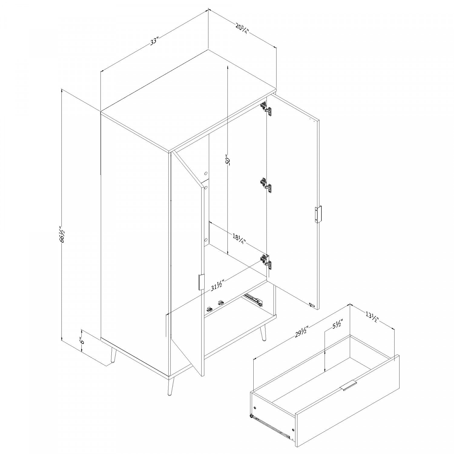 Largeur : 33 po (83,8 cm) Hauteur : 66,5 po (168,9 cm) Profondeur : 20,75 po (52,7 cm)