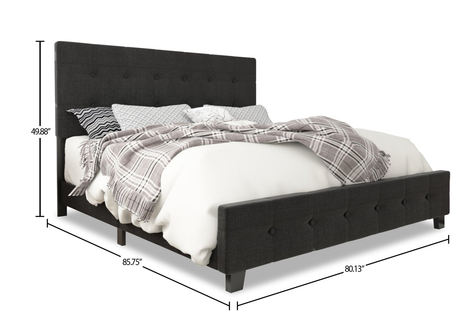 | Détails décoratifs | Le capitonnage à boutons sur la tête et le pied de lit rehausse le rembourrage en mousse sous le tissu d’apparence lin. |