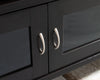 | Détails décoratifs | Les poignées en nickel sur les portes des armoires ajoutent un peu d'éclat pour faire un contraste avec la teinte de bois foncée. |